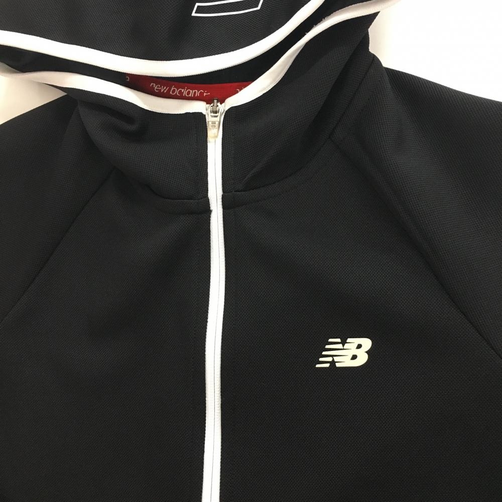 【美品】ニューバランスゴルフ ジップパーカー 黒×白 後裾斜めライン ブルゾン レディース 0(S) ゴルフウェア New Balance