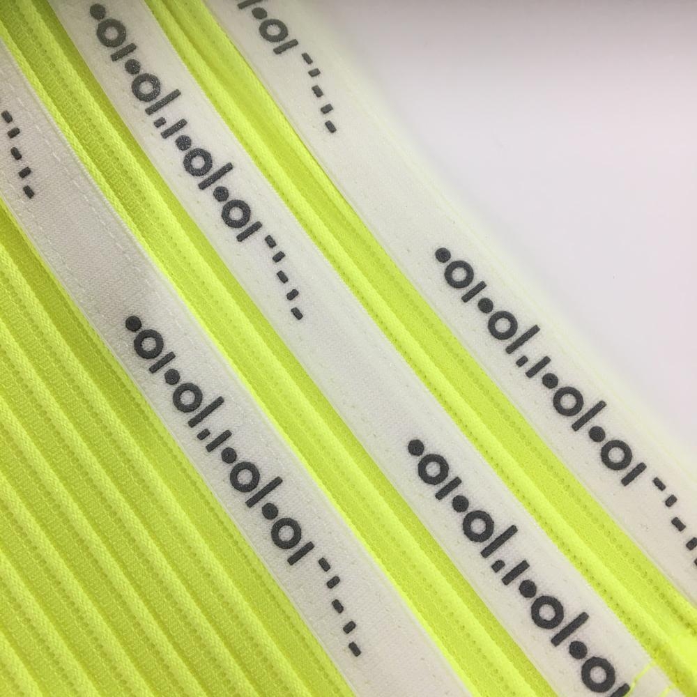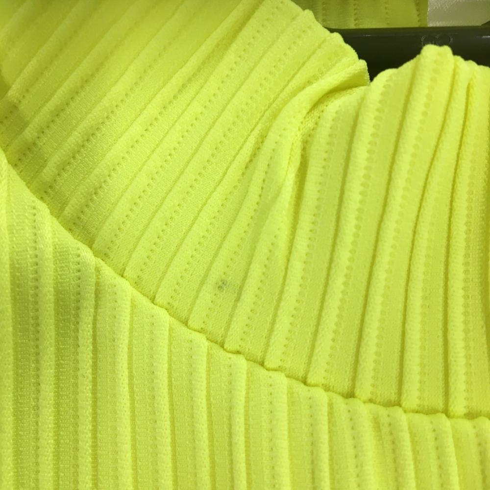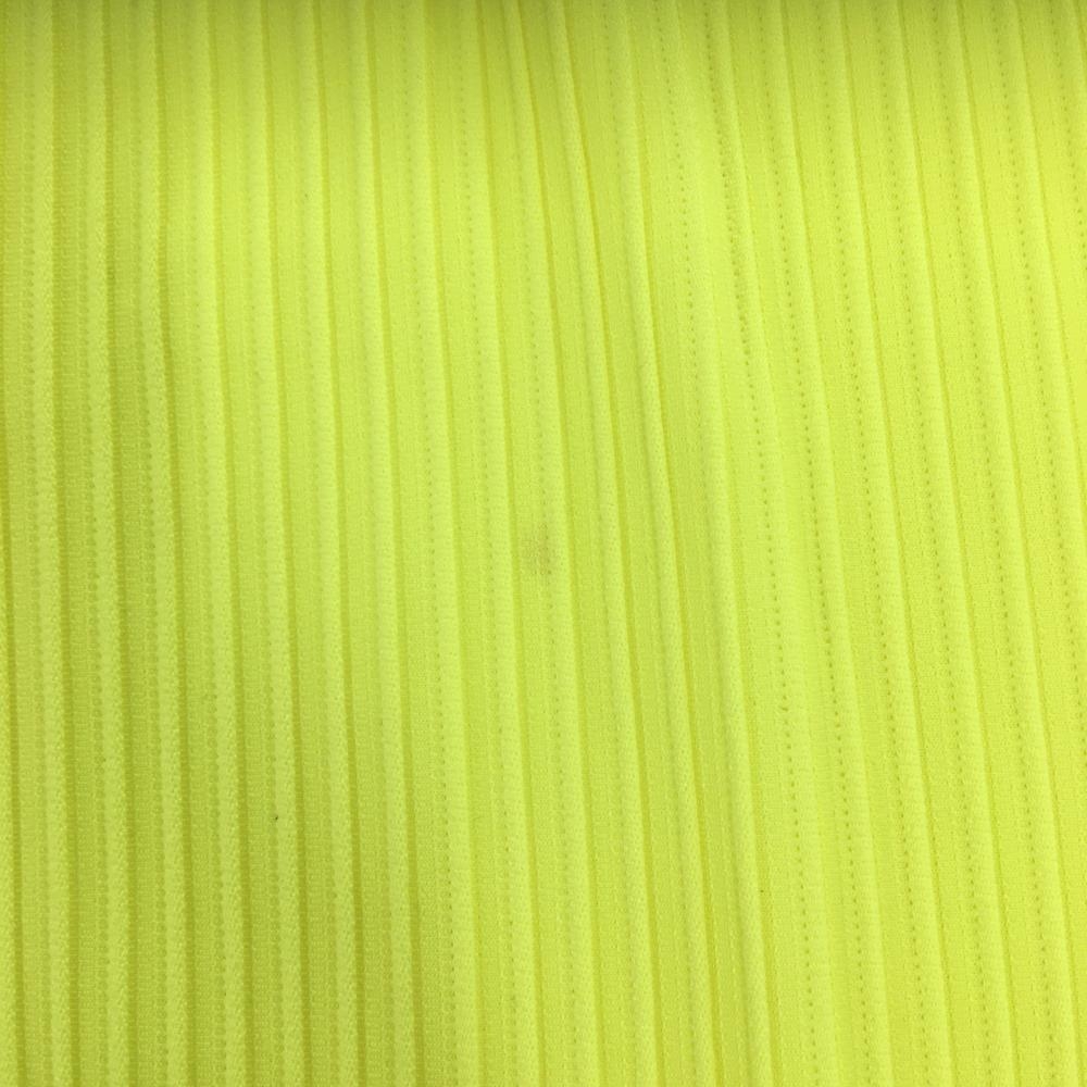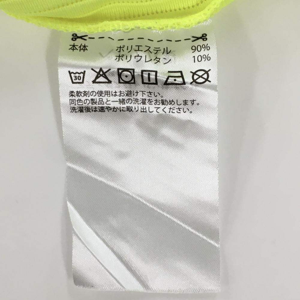 【超美品】アディダス 半袖ハイネックシャツ 蛍光イエロー×白 ストライプ織生地 レディース M ゴルフウェア adidas
