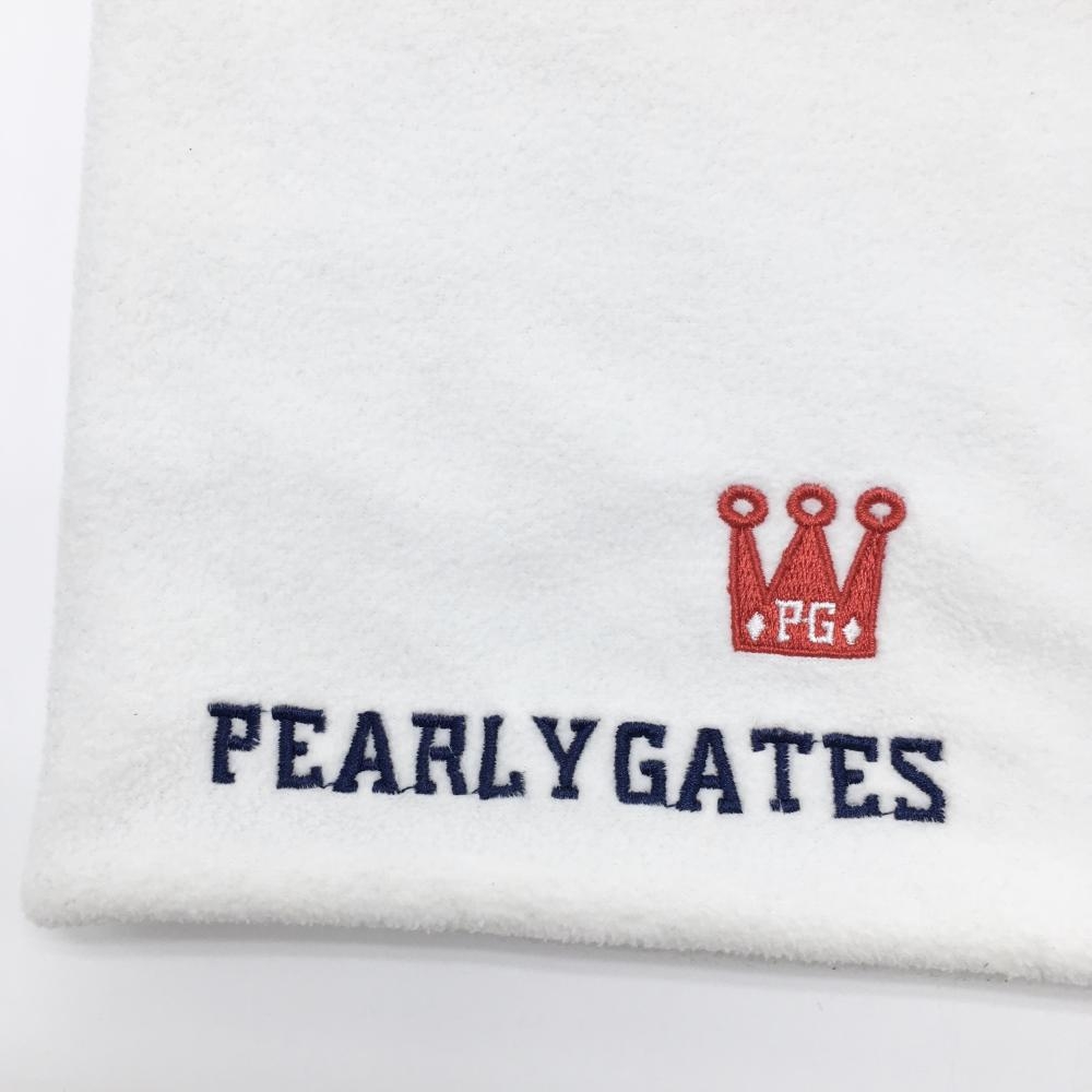 【美品】パーリーゲイツ ネックウォーマー 白 裏グレー ドローコード FR ゴルフウェア PEARLY GATES