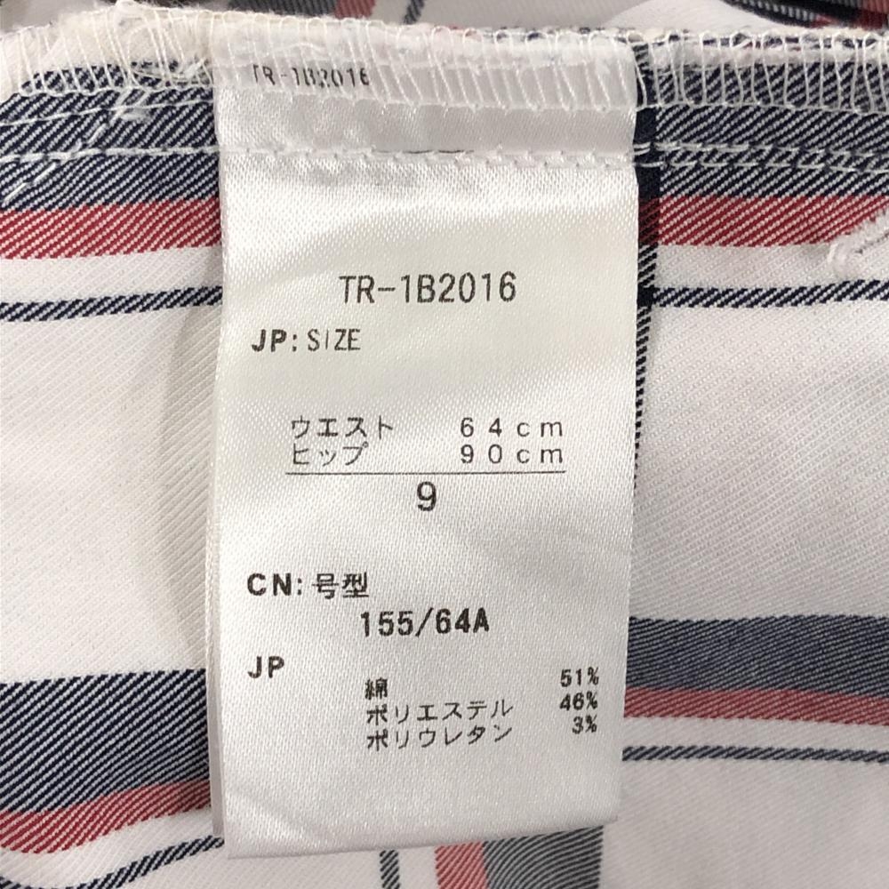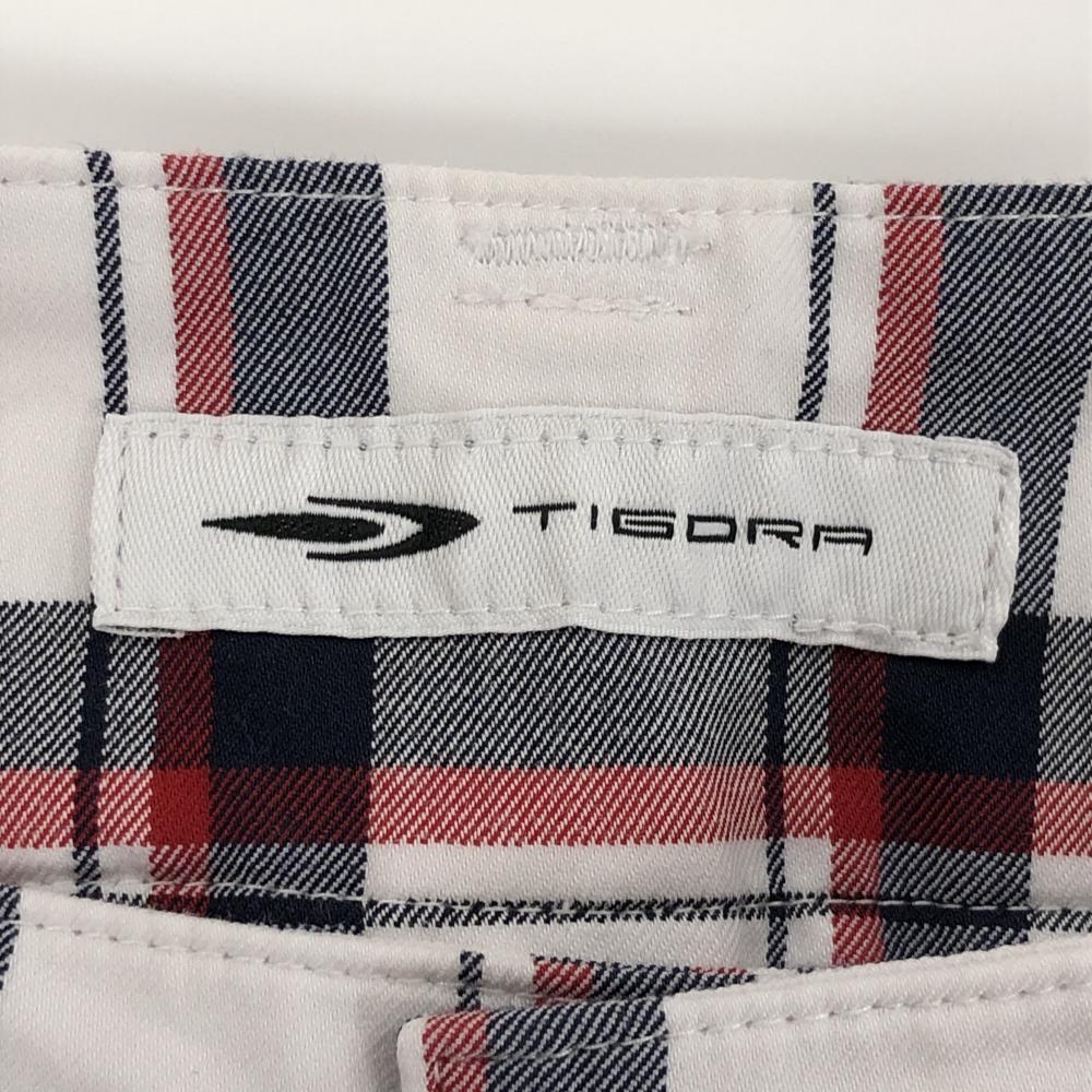 【美品】ティゴラ パンツ 白×ネイビー×レッド 格子柄 レディース 9 ゴルフウェア TIGORA