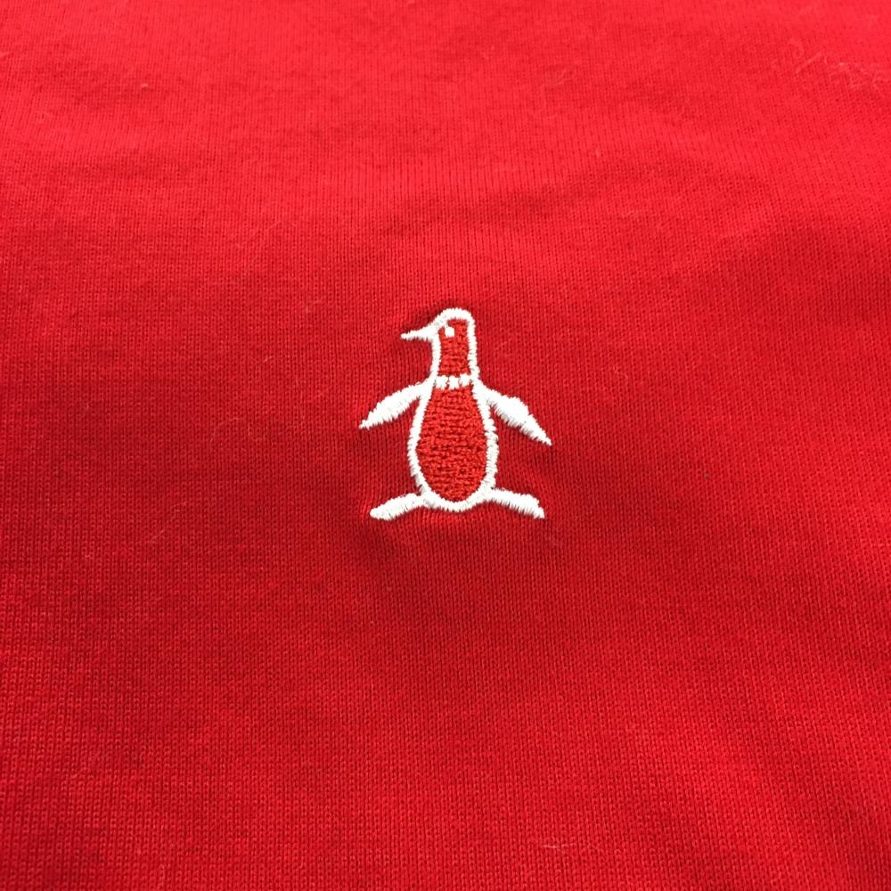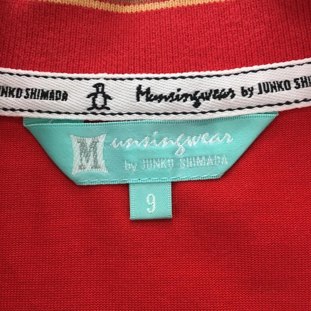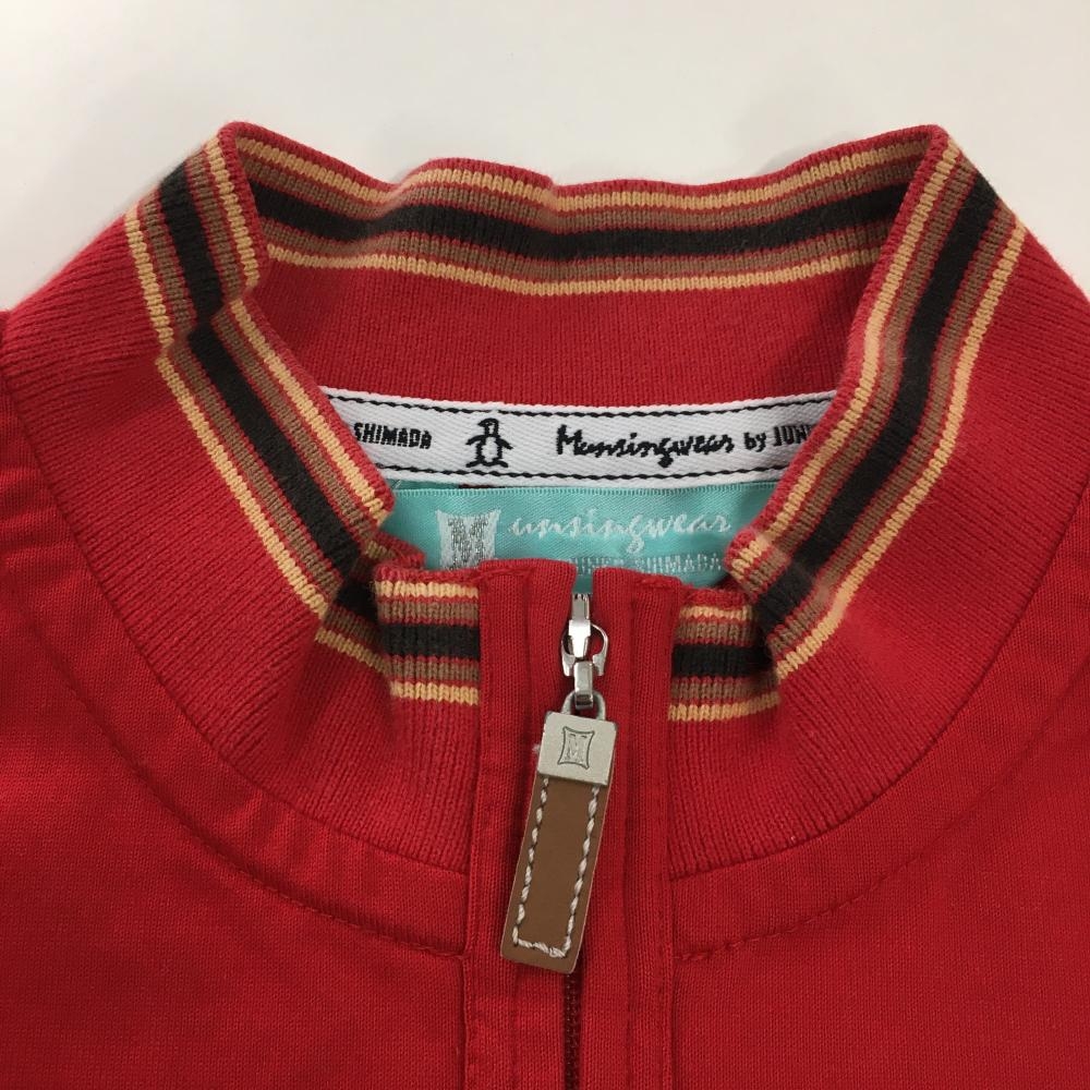 【美品】マンシングウェア 長袖ハイネックシャツ レッド×ブラウン ハーフジップ ネックライン レディース 9 ゴルフウェア Munsingwear