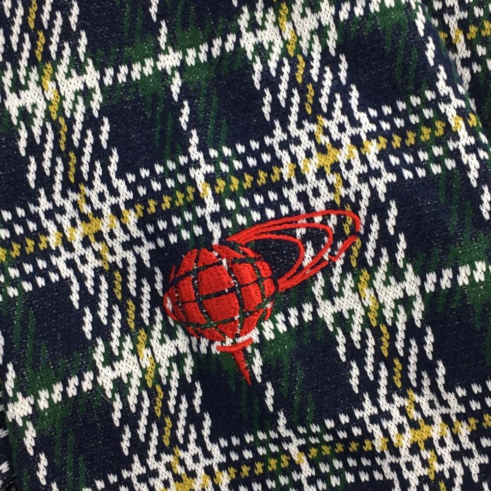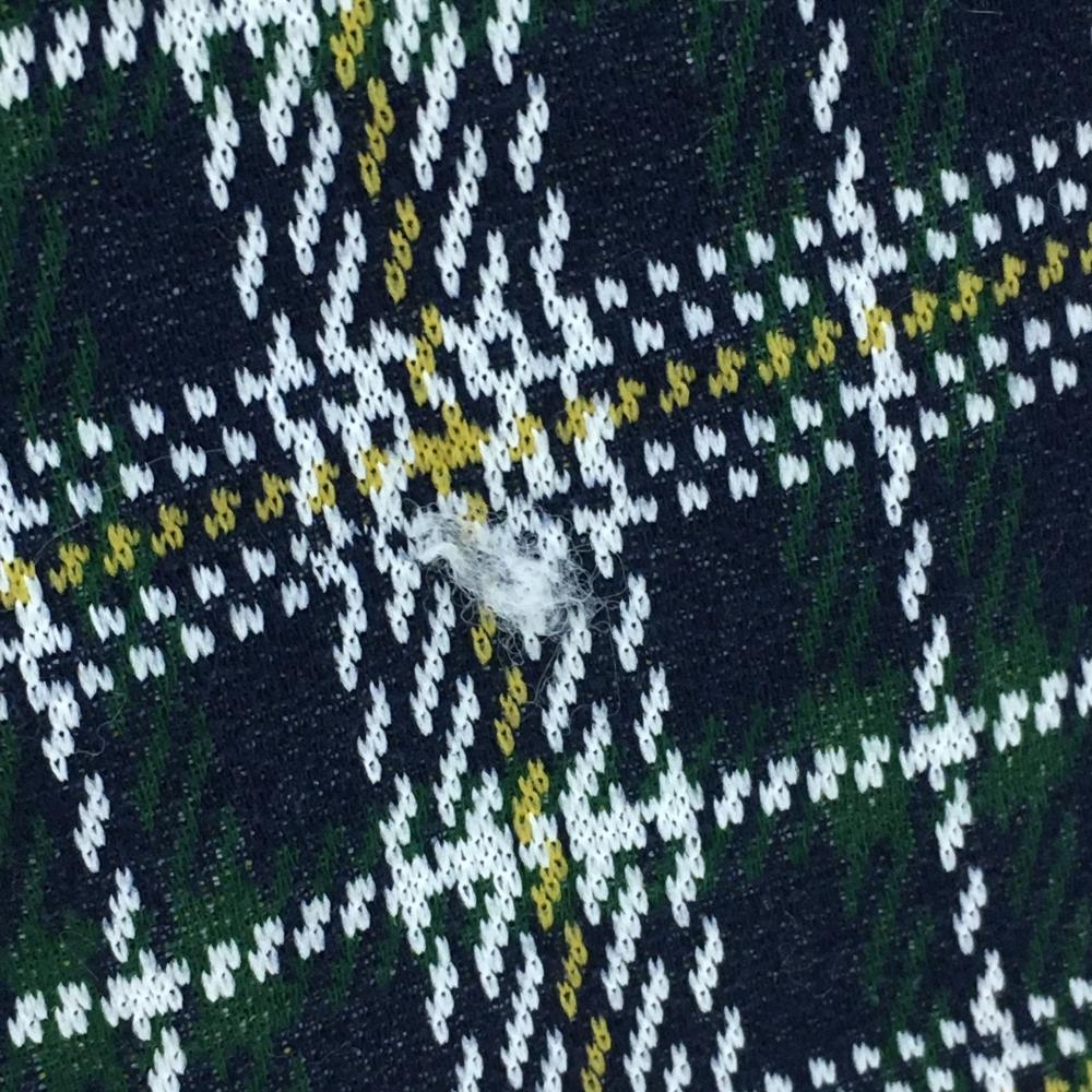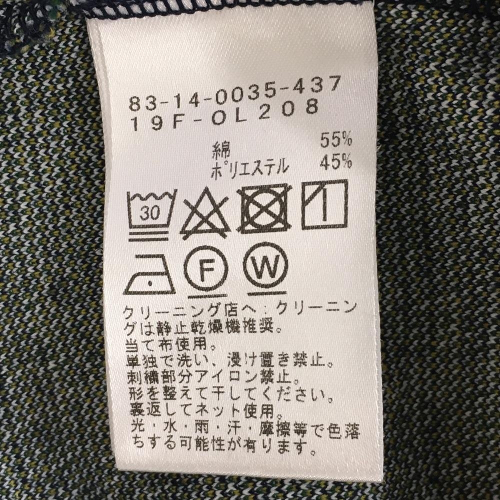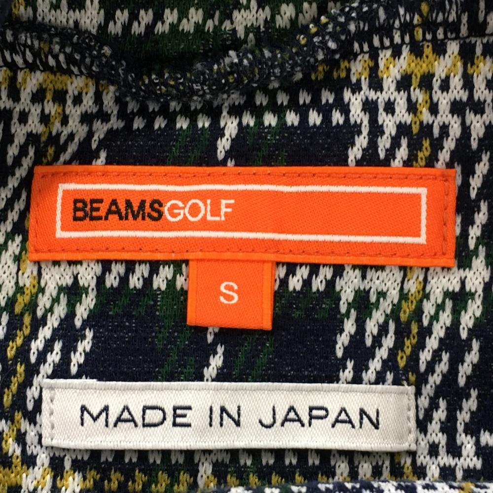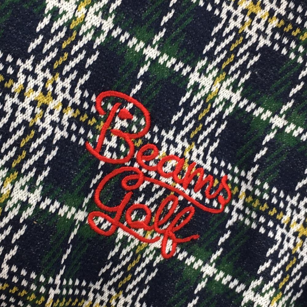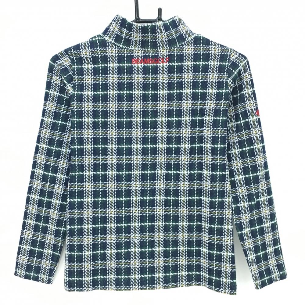 【美品】ビームスゴルフ 長袖ハイネックシャツ ネイビー×グリーン×白 チェック ロゴ刺しゅう レディース S ゴルフウェア BEAMS GOLF