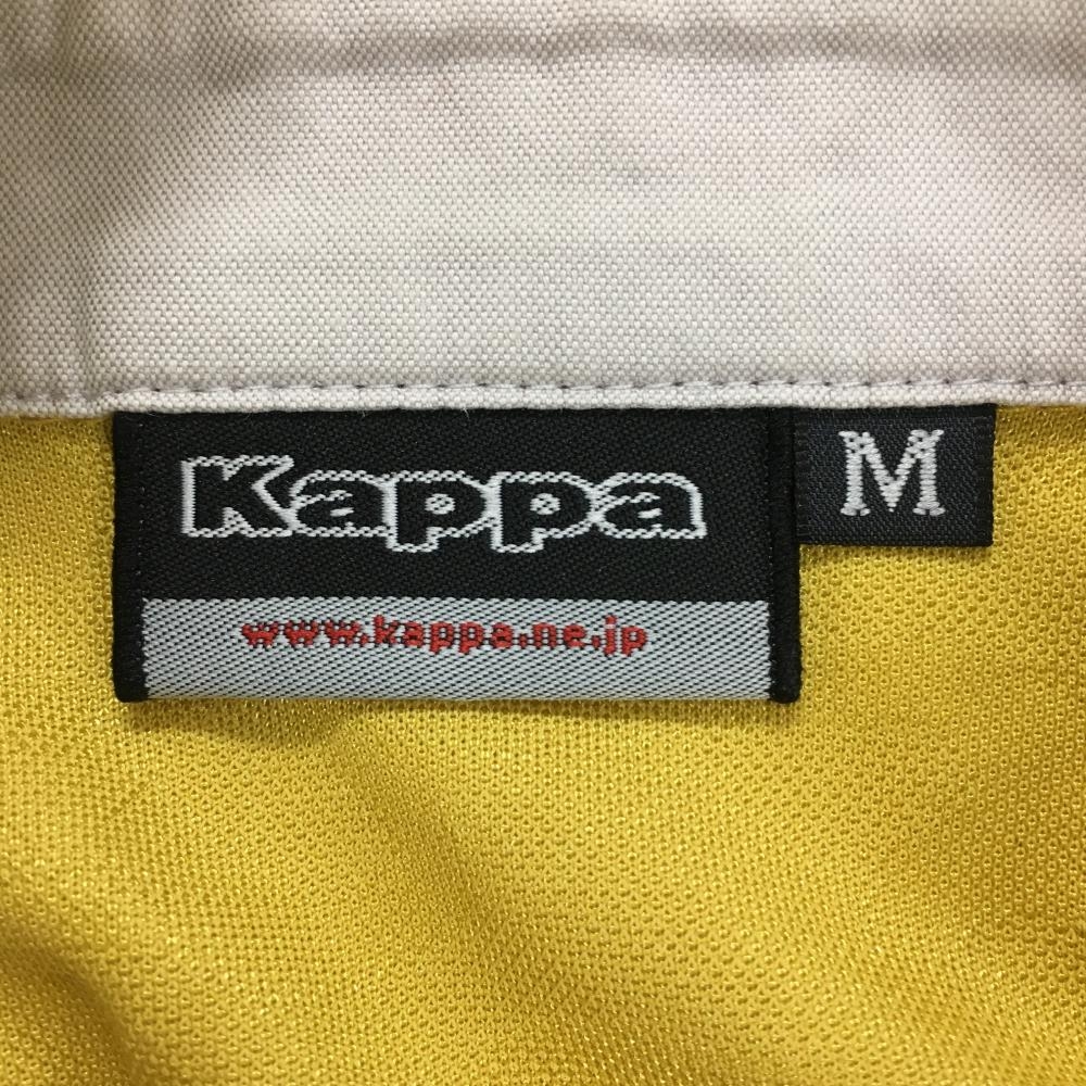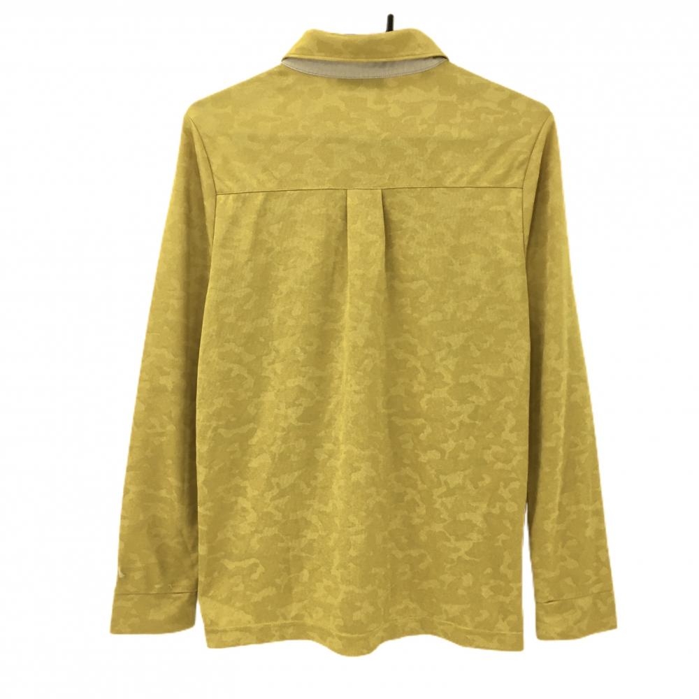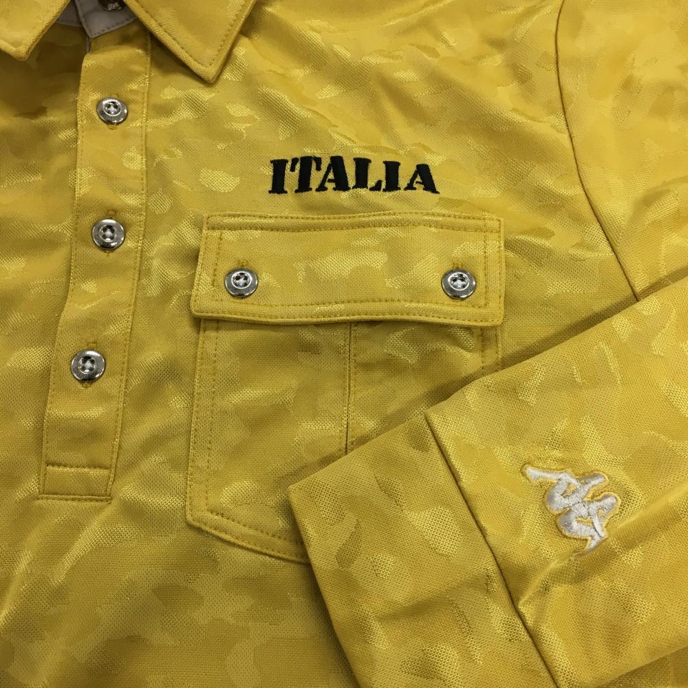 【美品】カッパ 長袖ポロシャツ マスタードイエロー×ゴールド 迷彩柄 カモフラ 袖ロゴ刺しゅう 胸ポケット メンズ M ゴルフウェア Kappa