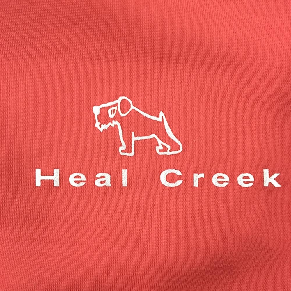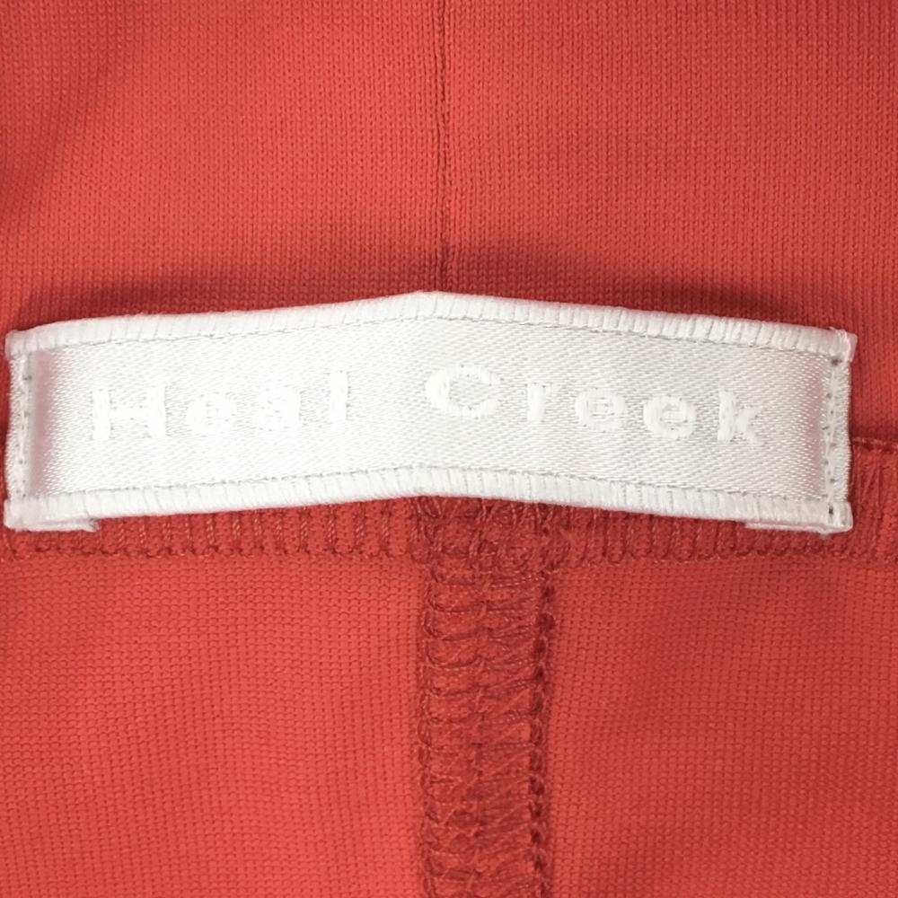 【超美品】ヒールクリーク 長袖ハイネックシャツ レッド ストレッチ ロゴプリント レディース 40(M) ゴルフウェア Heal Creek