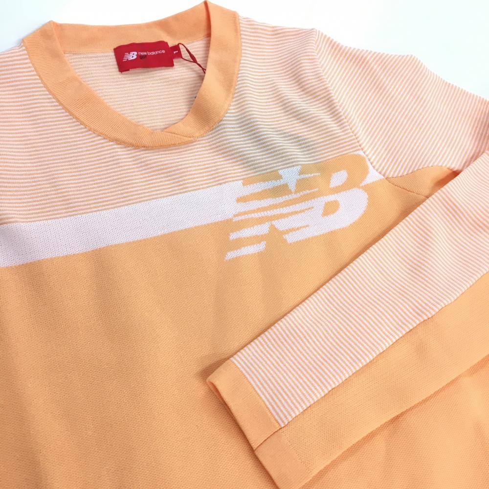 【新品】ニューバランスゴルフ セーター オレンジ×白 上部ボーダー 薄手 ニット レディース L ゴルフウェア 2023年モデル New Balance
