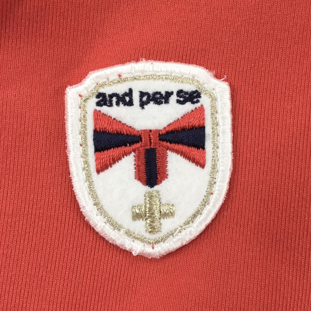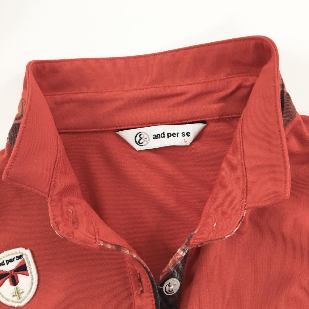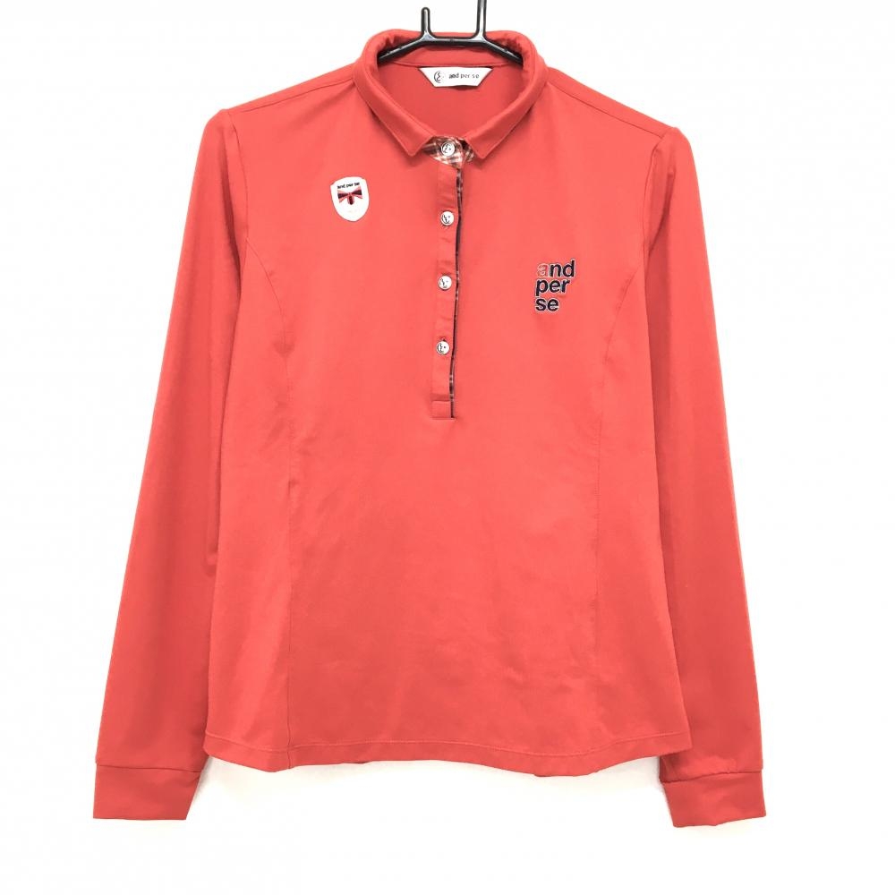 アンパスィ 長袖ポロシャツ レッド 前立て一部チェック レディース L ゴルフウェア and per se