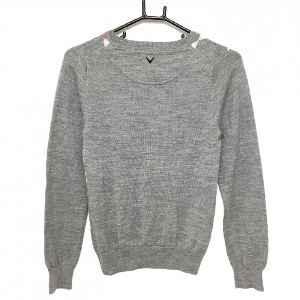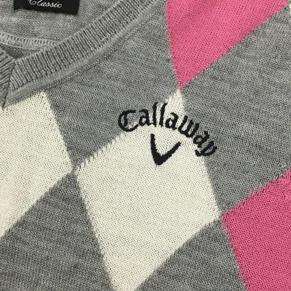 キャロウェイ セーター グレー×ピンク×白 Vネック ダイヤ柄 ニット レディース M ゴルフウェア Callaway