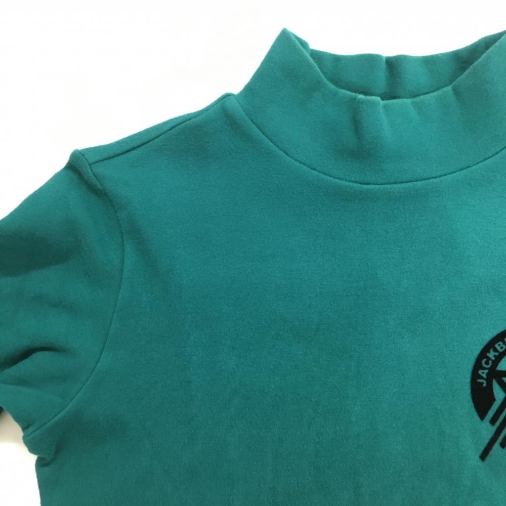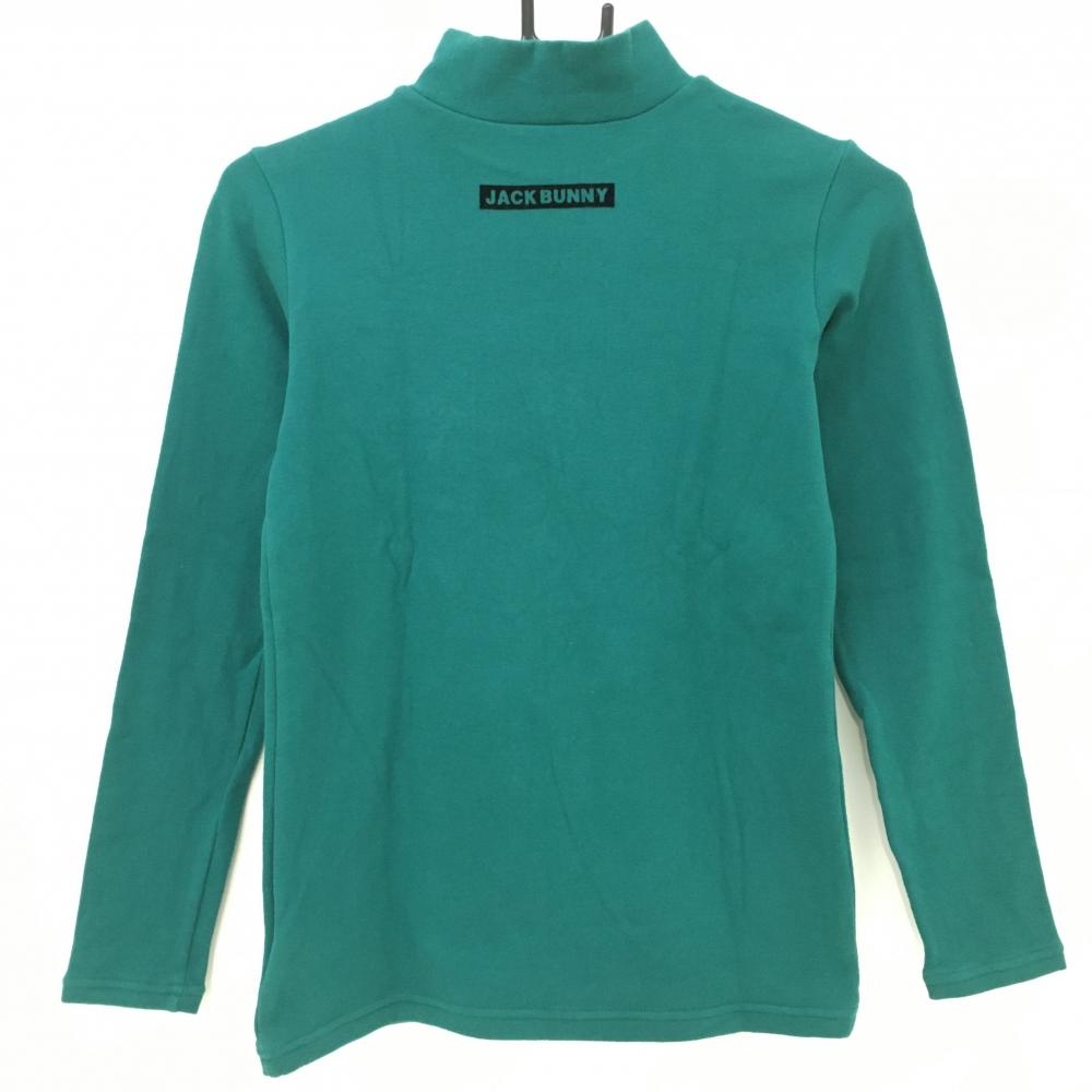 ジャックバニー 長袖ハイネックシャツ グリーン×黒 フロッキーロゴ 厚手 レディース 0(S) ゴルフウェア Jack Bunny
