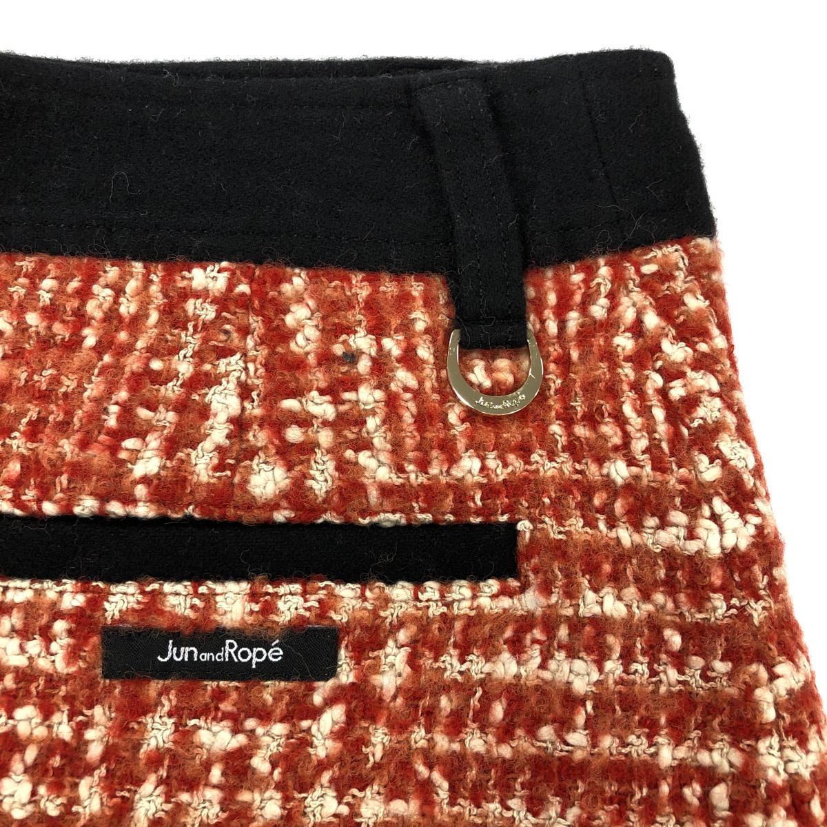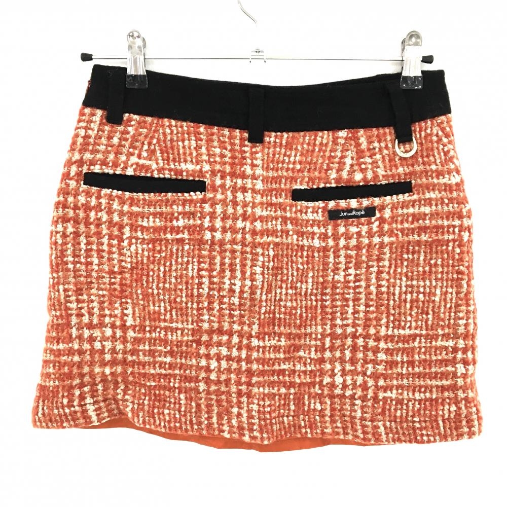 【美品】ジュンアンドロペ ニットスカート レッド×白 ウール混 ツイード調 裏地付 レディース M ゴルフウェア JUN&ROPE