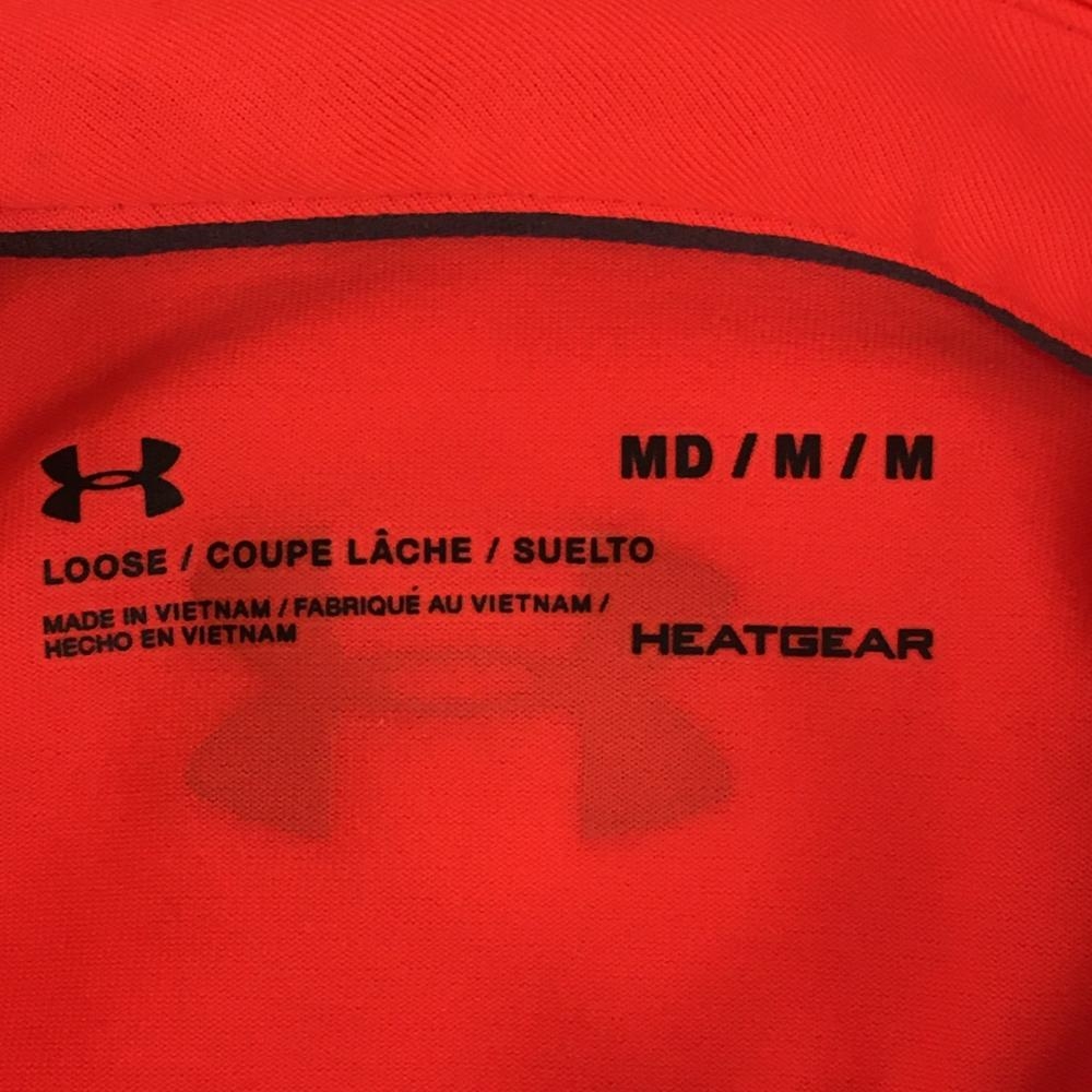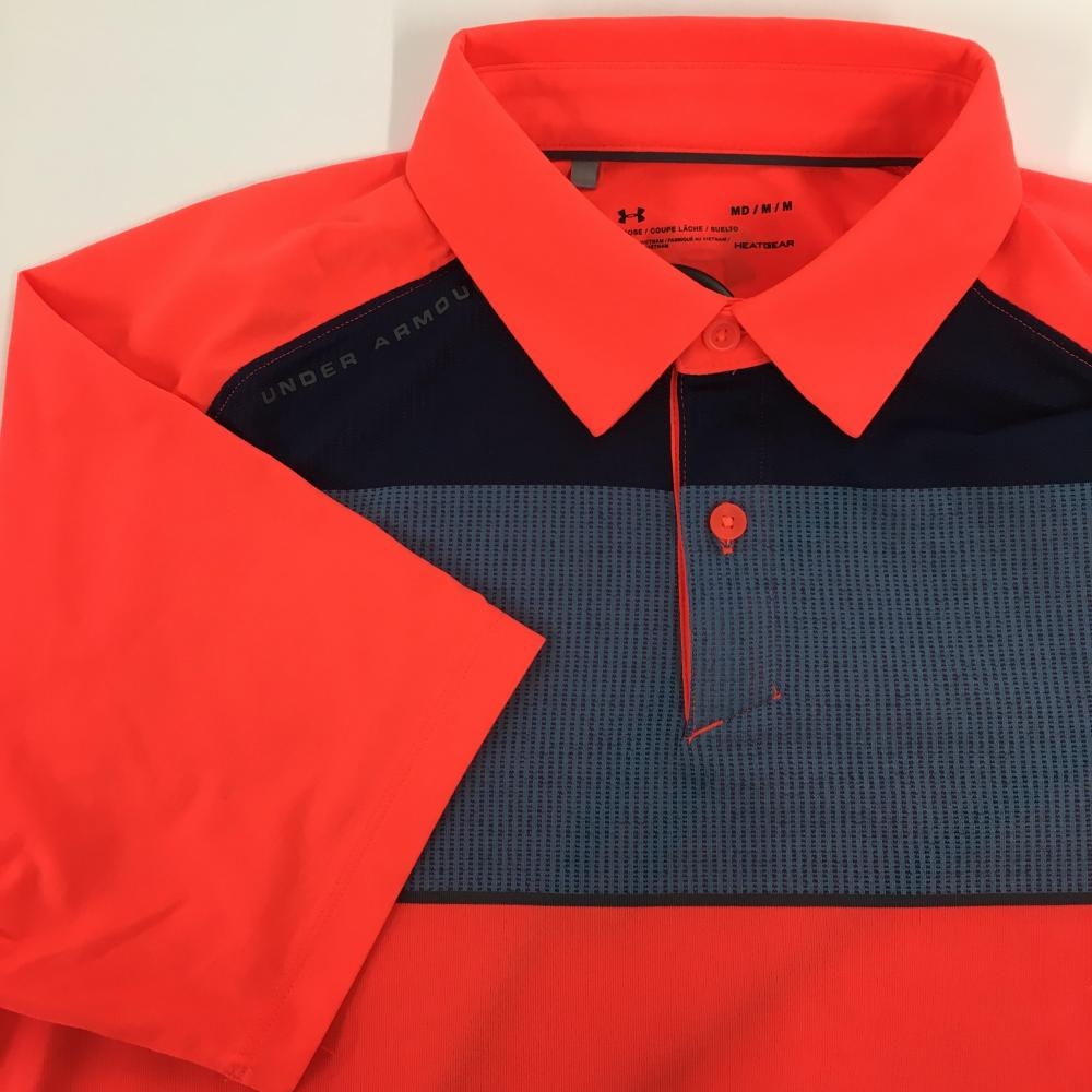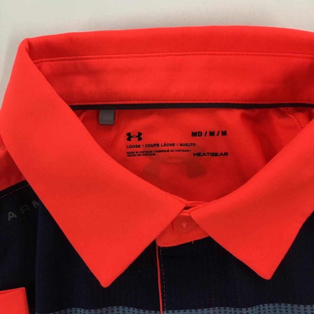 アンダーアーマー 半袖ポロシャツ オレンジ×ネイビー バイカラー 一部メッシュ調 メンズ MD/M/M ゴルフウェア UNDER ARMOUR