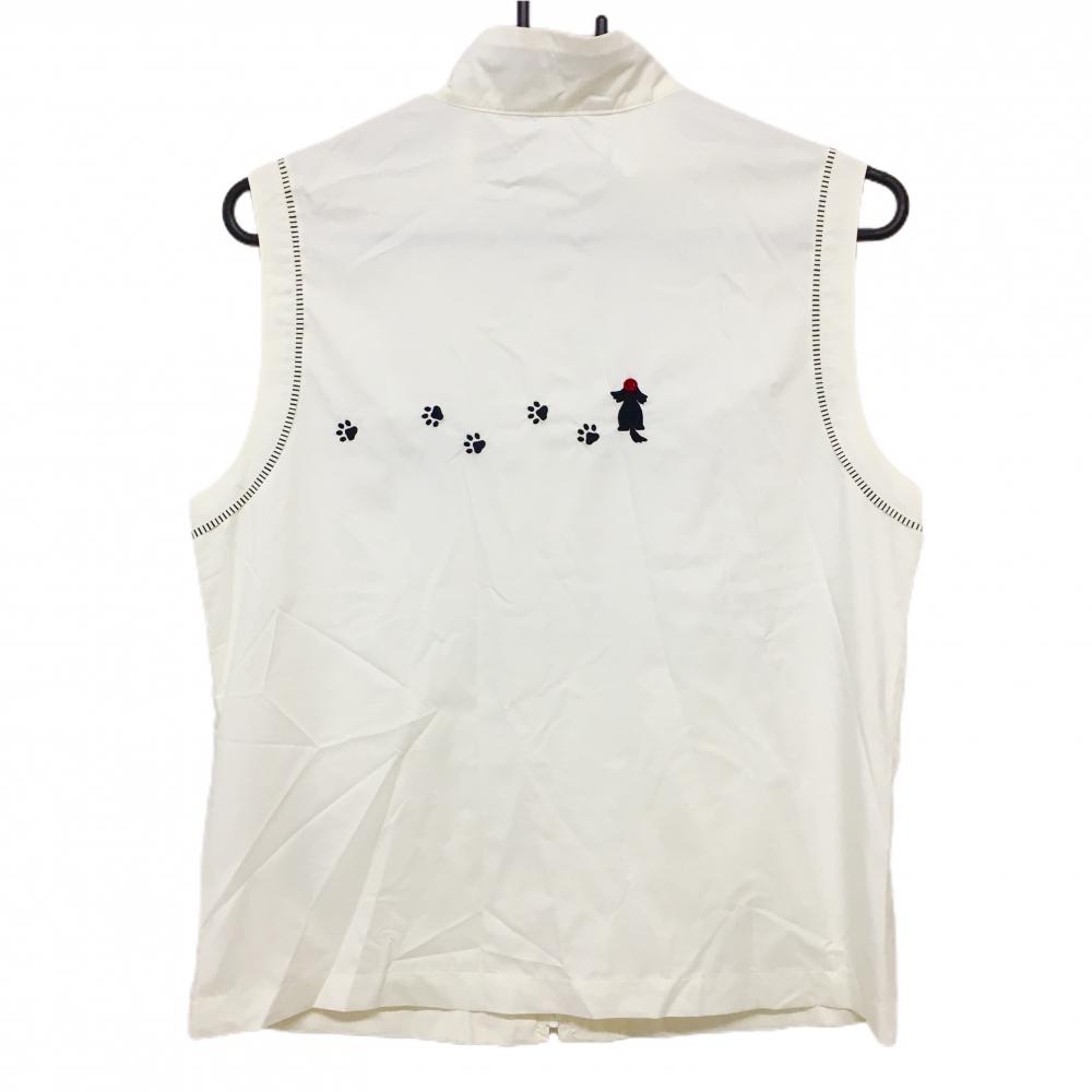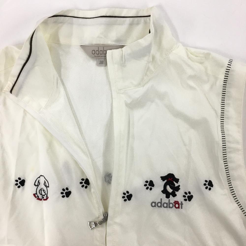 【美品】アダバット ジップベスト 白 裏地メッシュ イヌ刺しゅう レディース 38(M) ゴルフウェア adabat