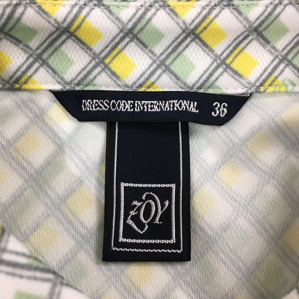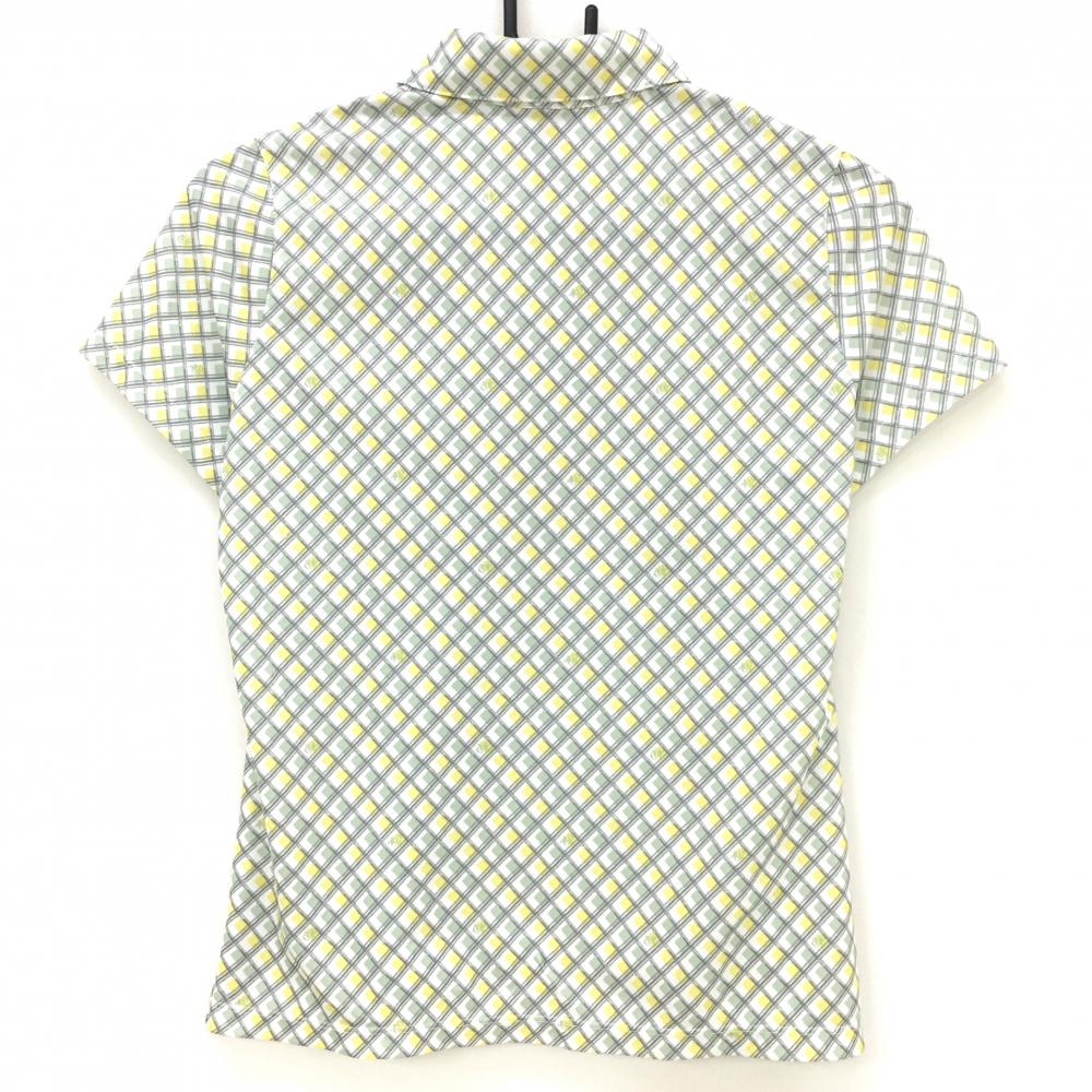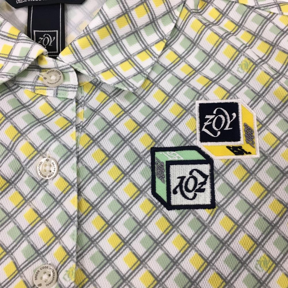 【超美品】ゾーイ 半袖ポロシャツ 白×ライトグリーン チェック ロゴ刺しゅう レディース 36(S) ゴルフウェア ZOY