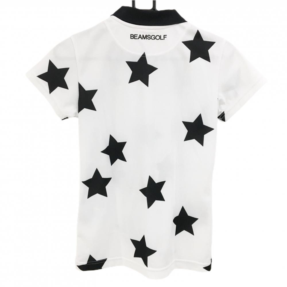 ビームスゴルフ 半袖ポロシャツ 白×黒 星柄 スター レディース S ゴルフウェア BEAMS GOLF