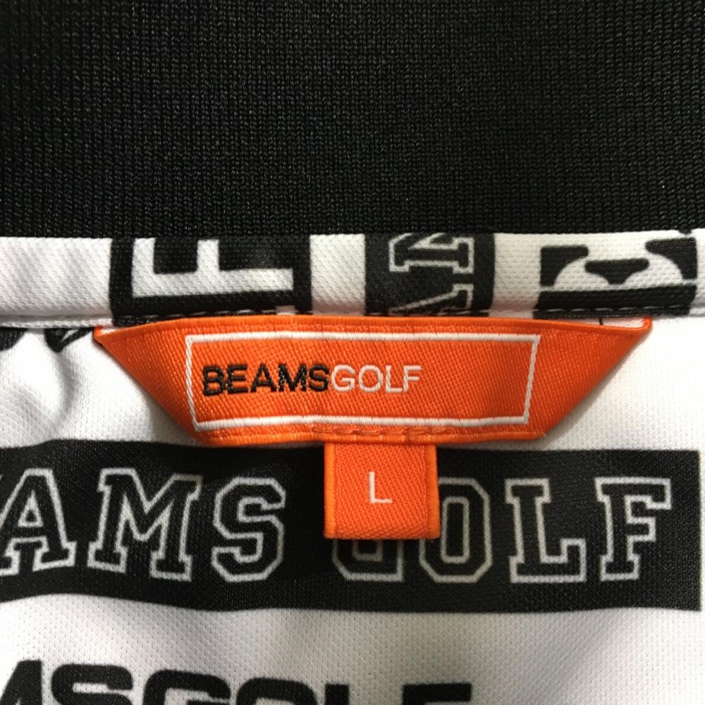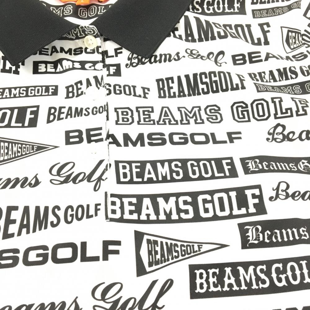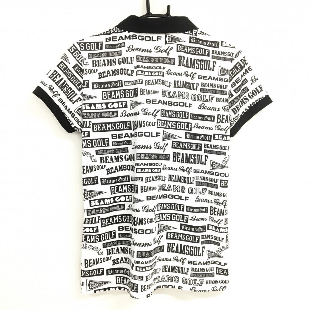 【美品】ビームスゴルフ 半袖ポロシャツ 白×黒 ロゴ総柄 レディース L ゴルフウェア BEAMS GOLF
