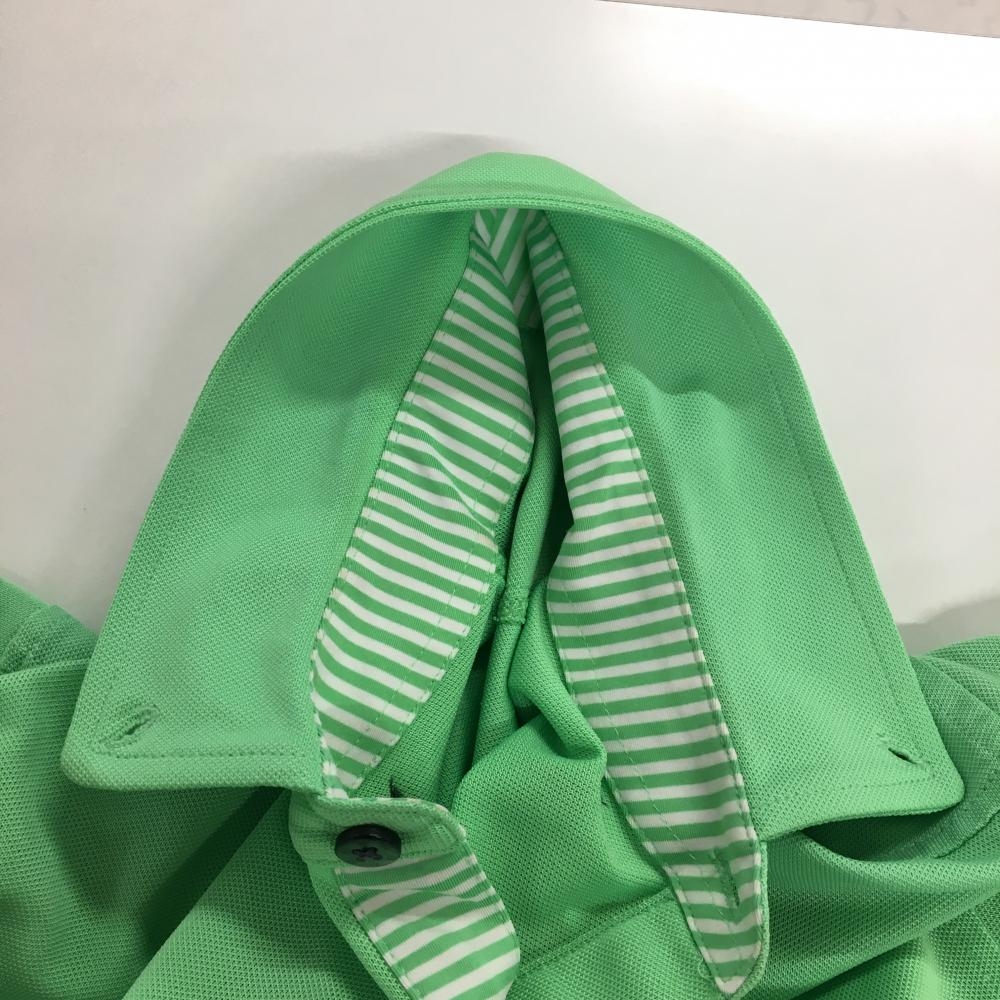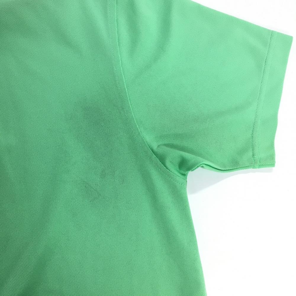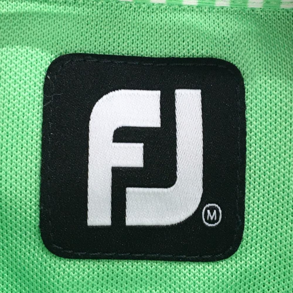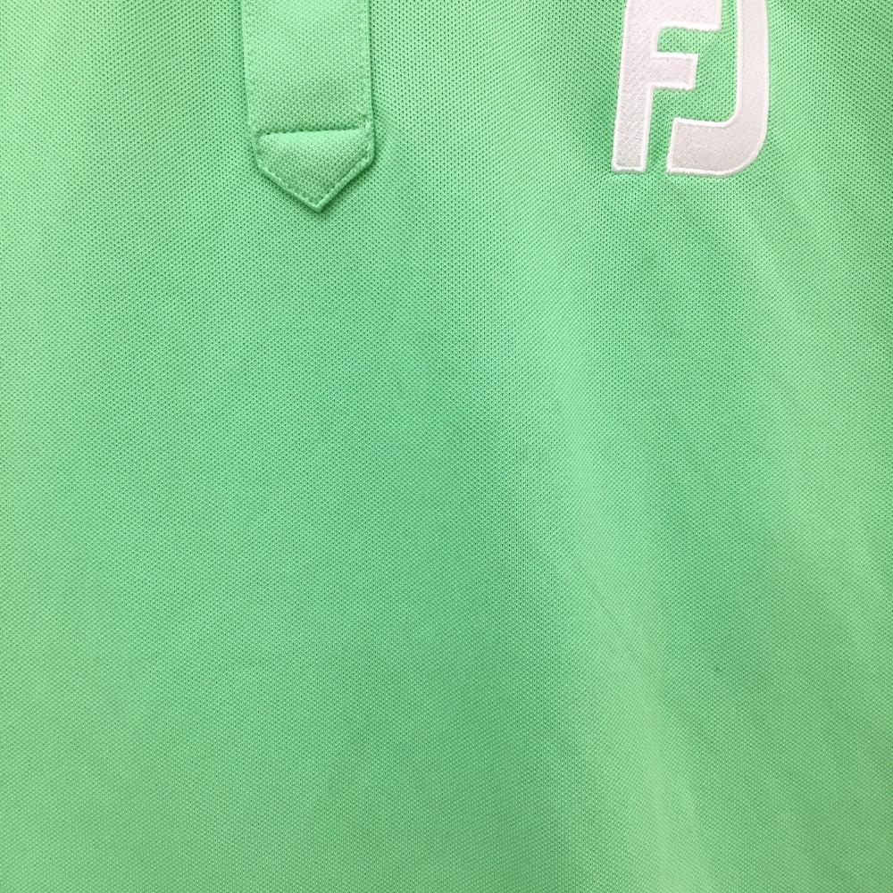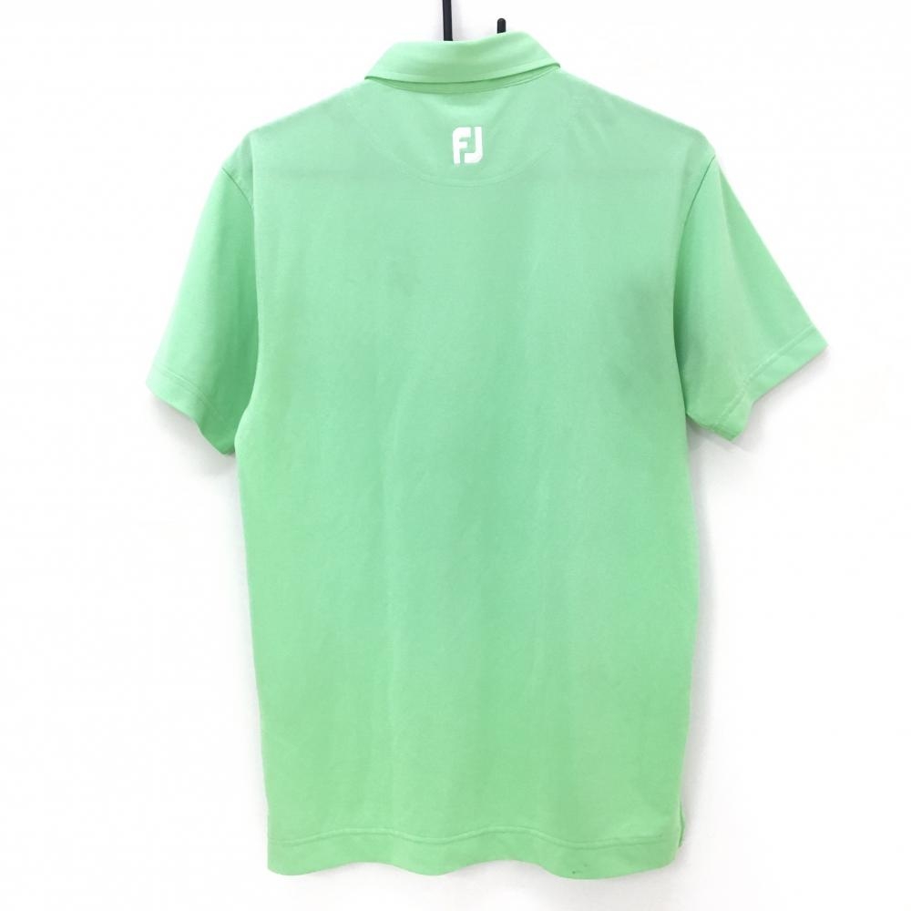 フットジョイ 半袖ポロシャツ ライトグリーン×白 ボタンダウン ビッグロゴ刺しゅう メンズ M ゴルフウェア FootJoy