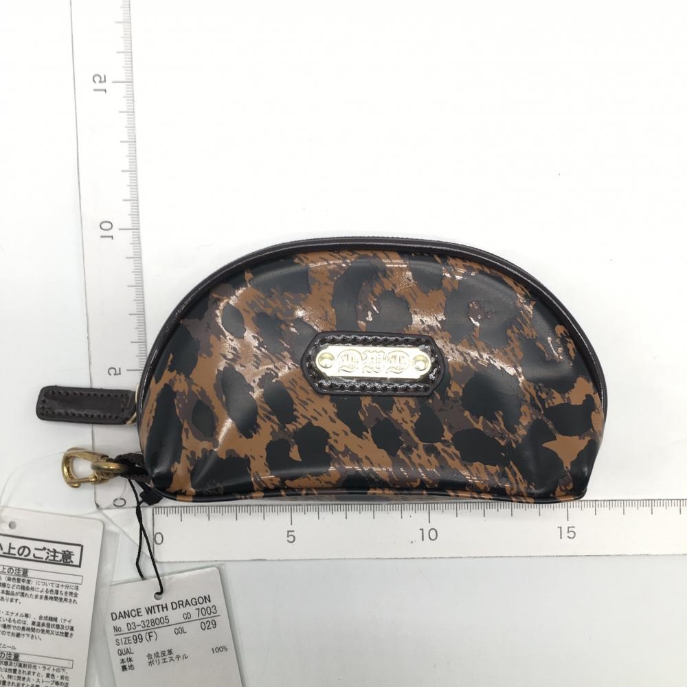 【新品】ダンスウィズドラゴン ポーチ ブラウン×黒 レオパード柄 ティー装着可 ゴルフ Dance With Dragon