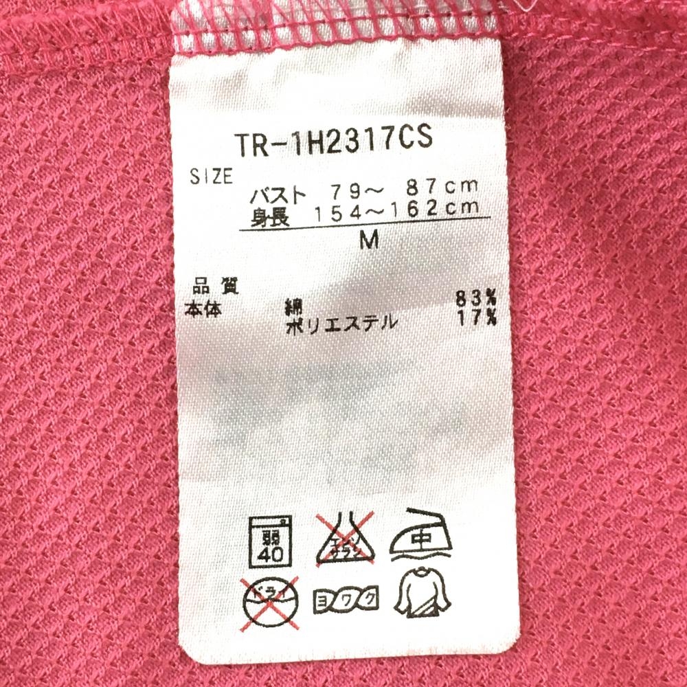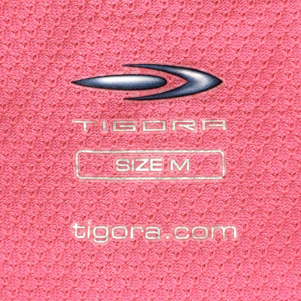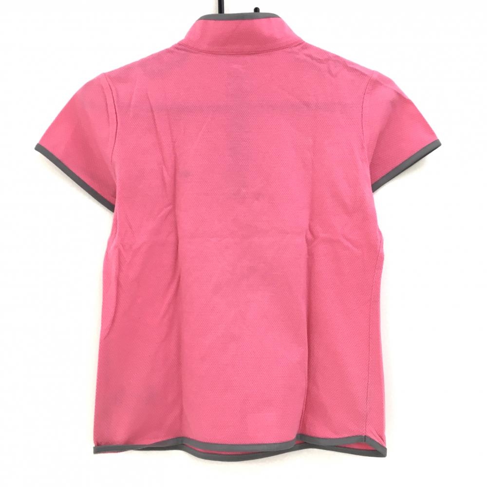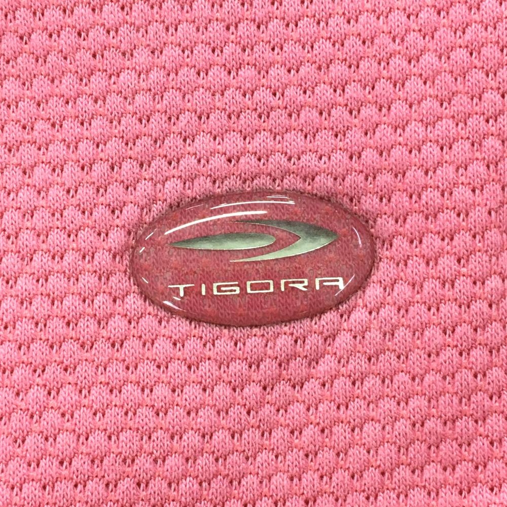 【超美品】ティゴラ 半袖ハイネックシャツ ピンク×グレー ハーフジップ 織生地 レディース M ゴルフウェア TIGORA