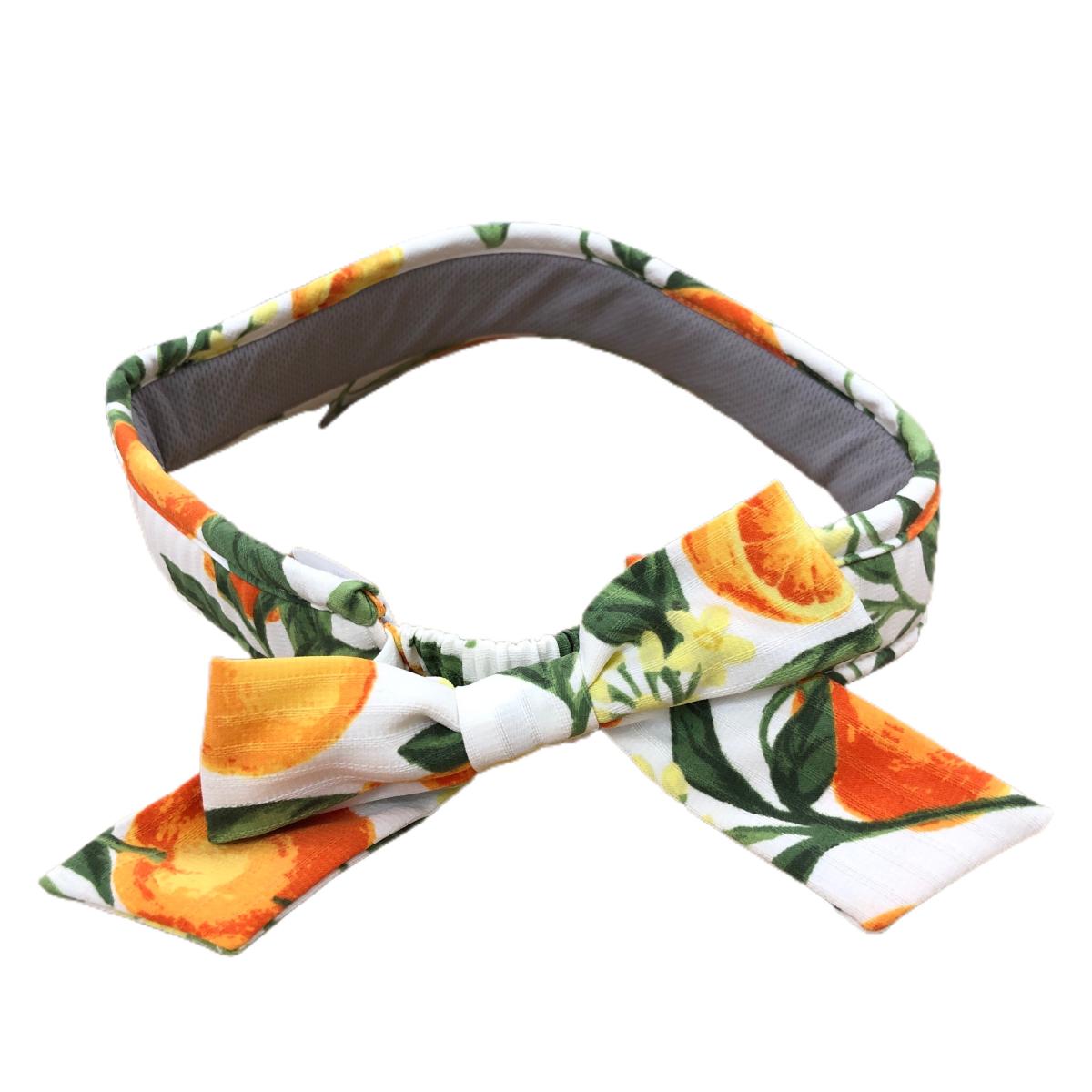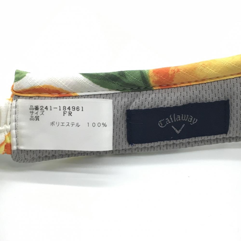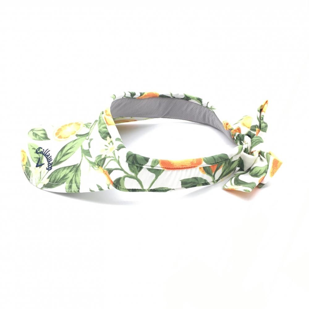 【超美品】キャロウェイ サンバイザー 白×オレンジ オレンジ柄×花柄 ストライプ織生地 後ろリボン レディース FR ゴルフウェア Callaway