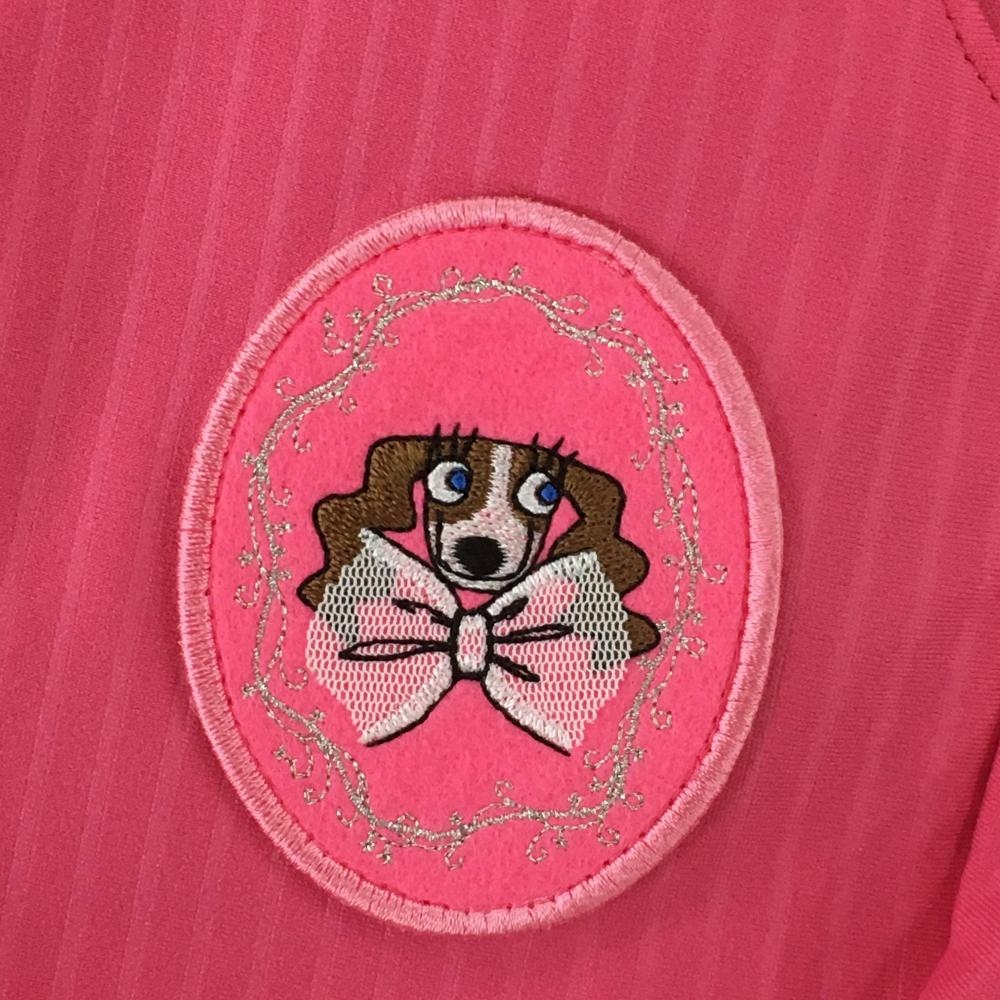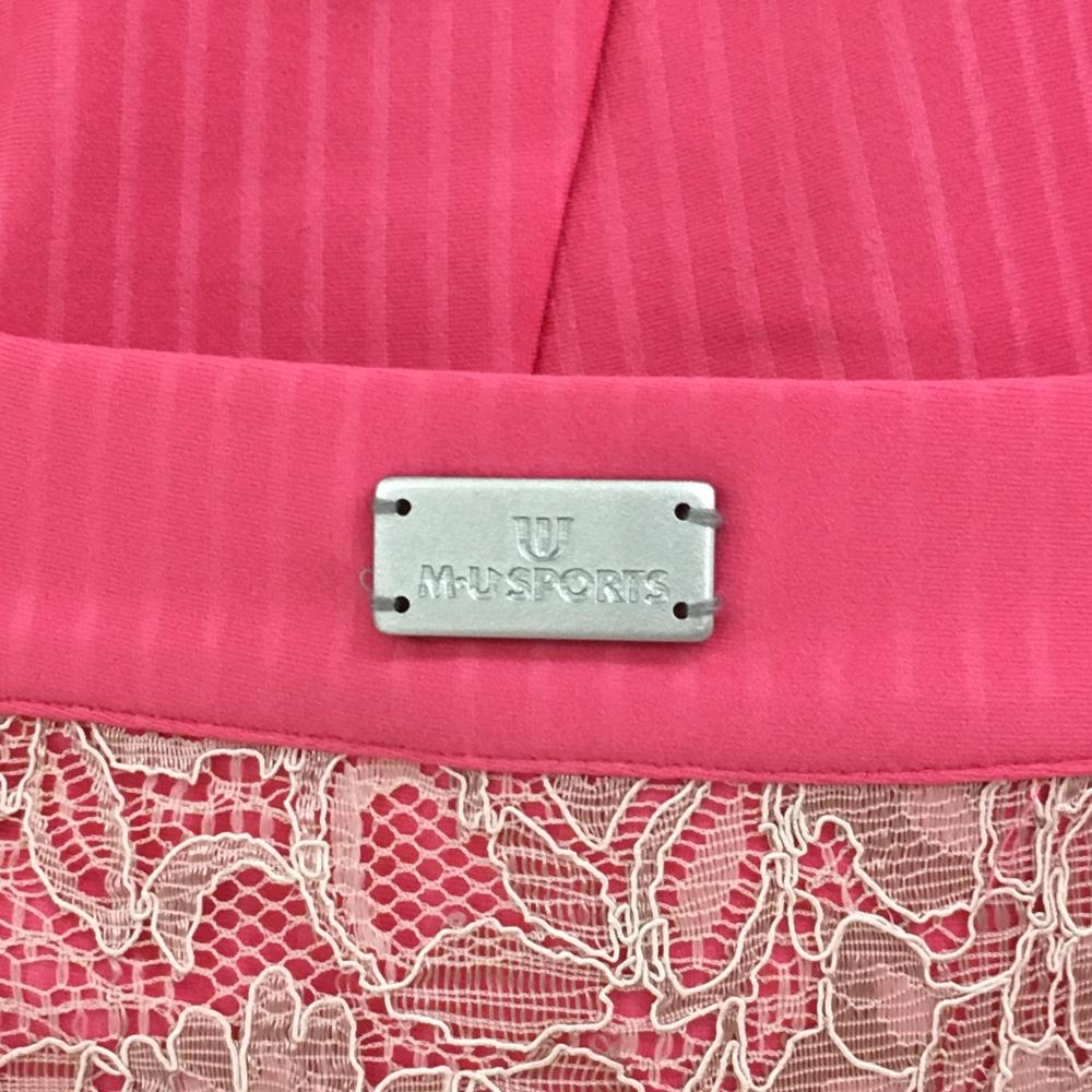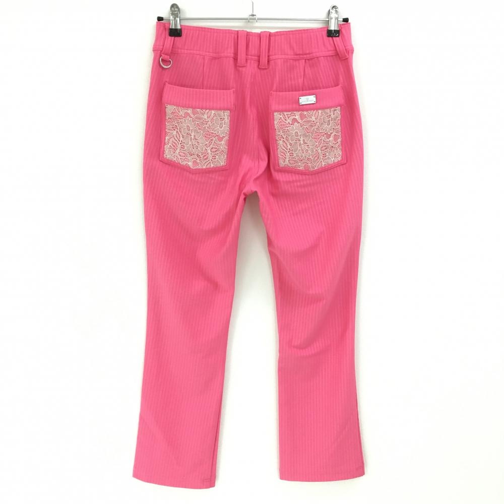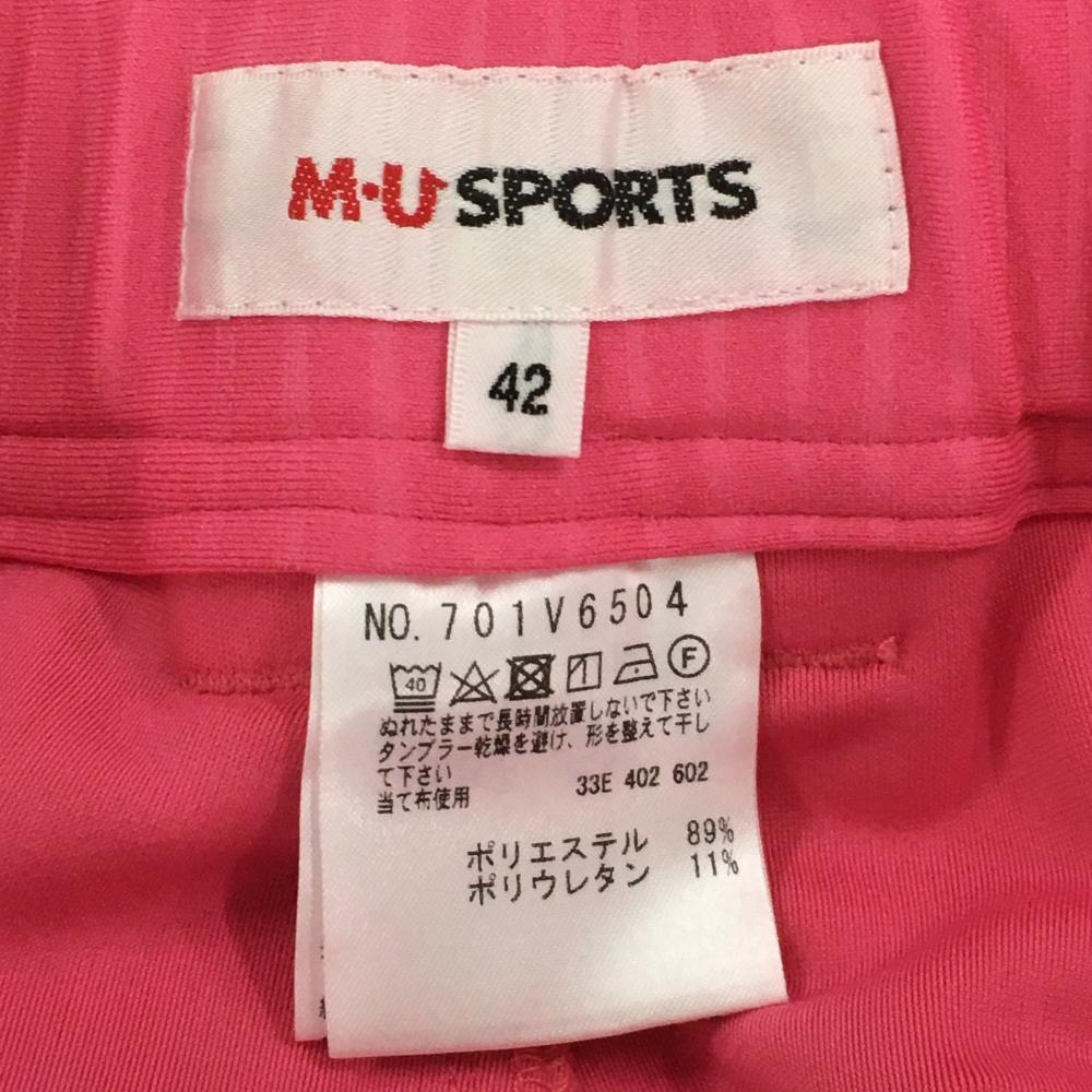 【超美品】MUスポーツ パンツ ピンク ストライプ 犬ワッペン 後ポケットレース レディース 42(L) ゴルフウェア M・U SPORTS