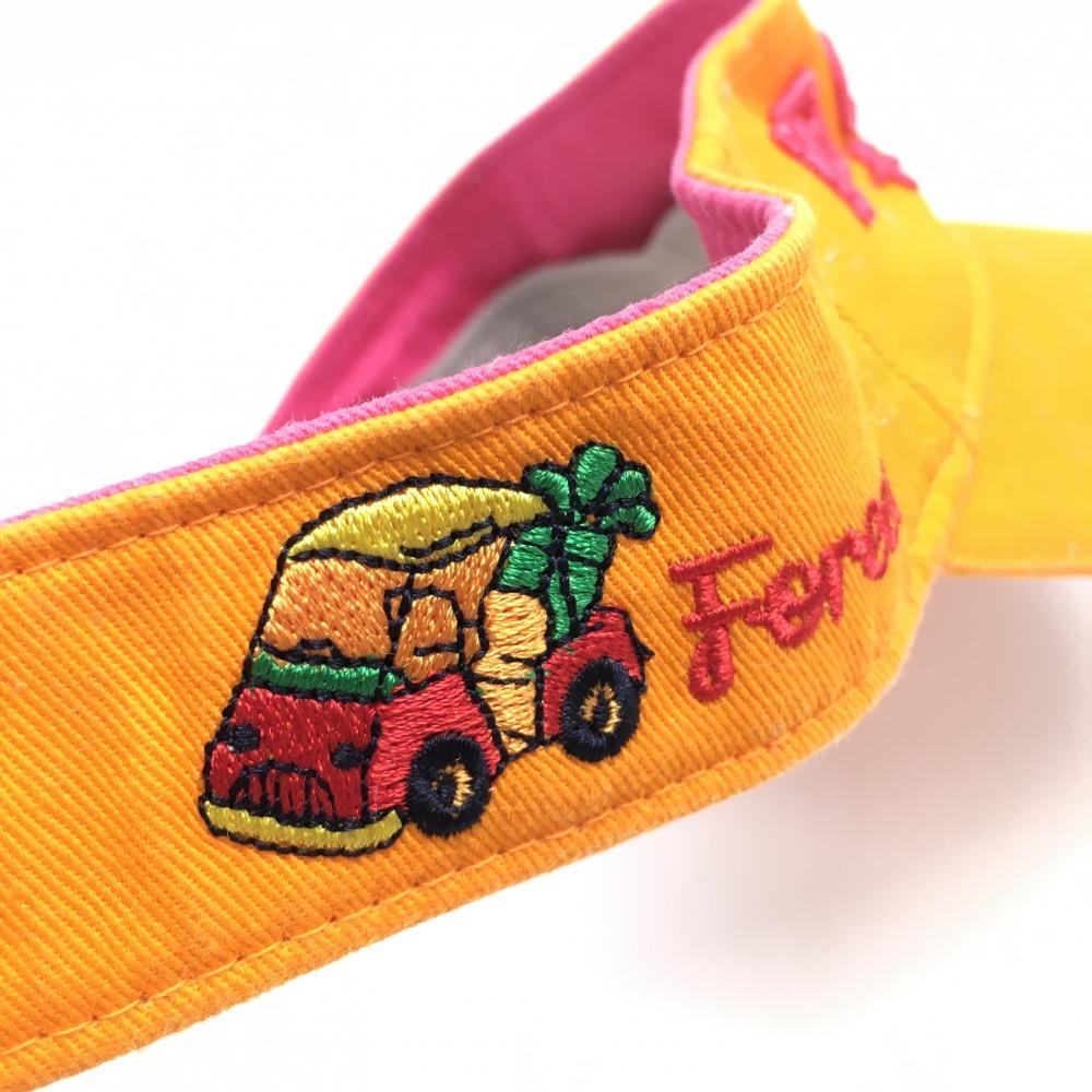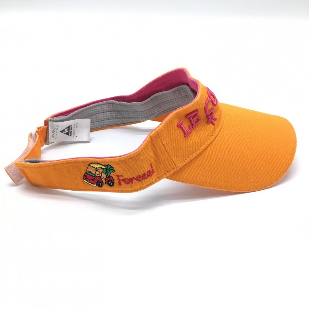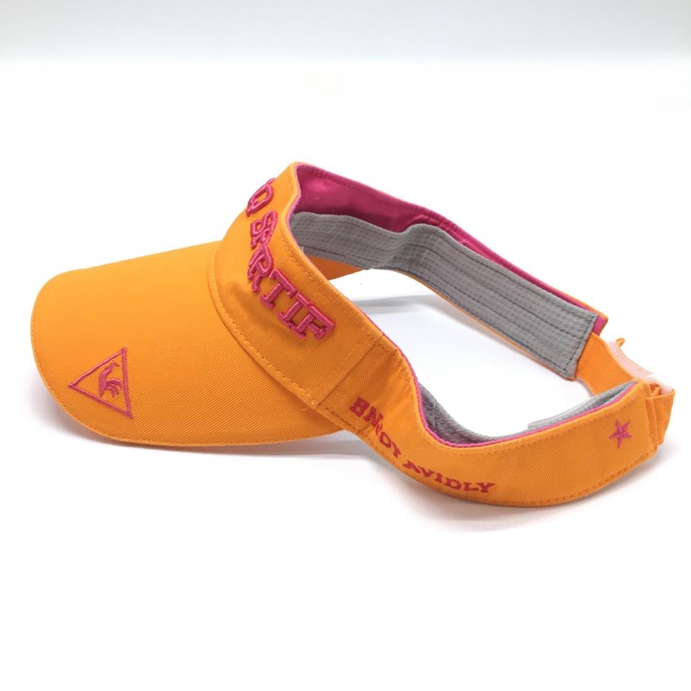 【美品】ルコック サンバイザー オレンジ×ピンク カート刺しゅう F(55-57cm) ゴルフウェア le coq sportif