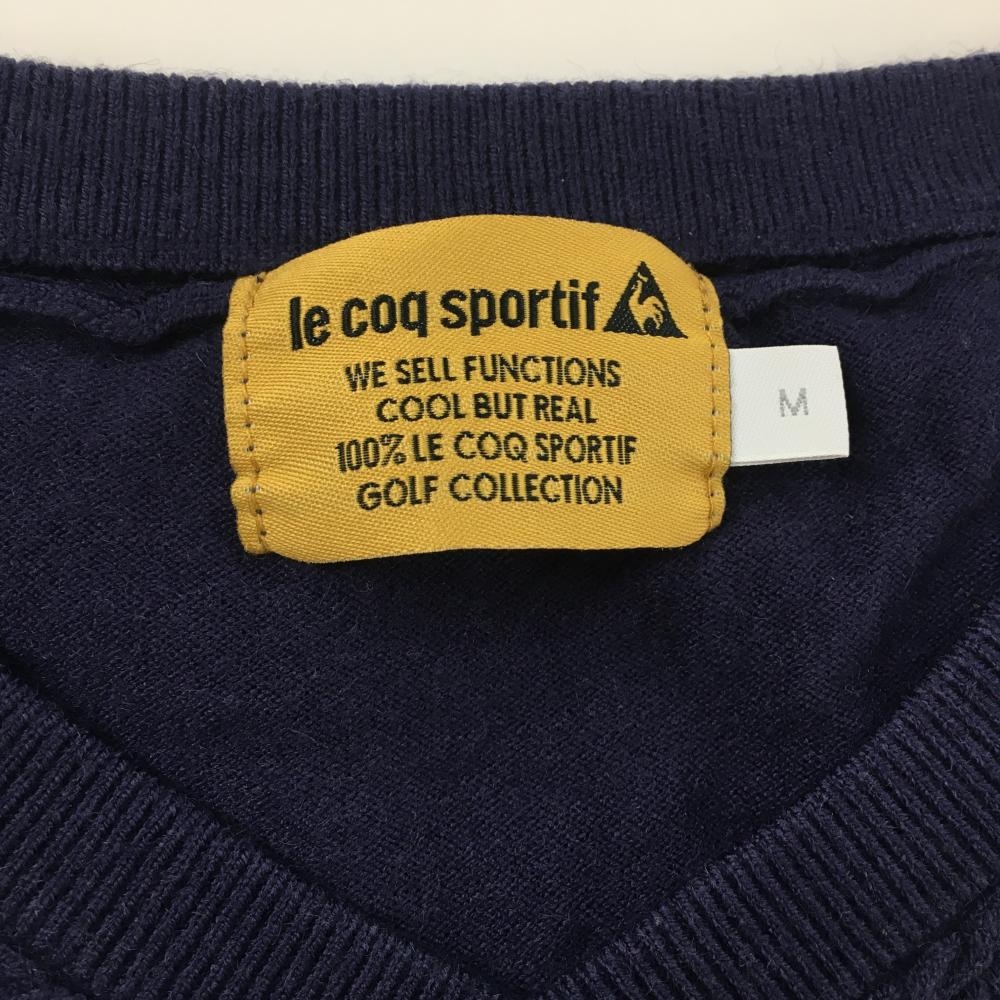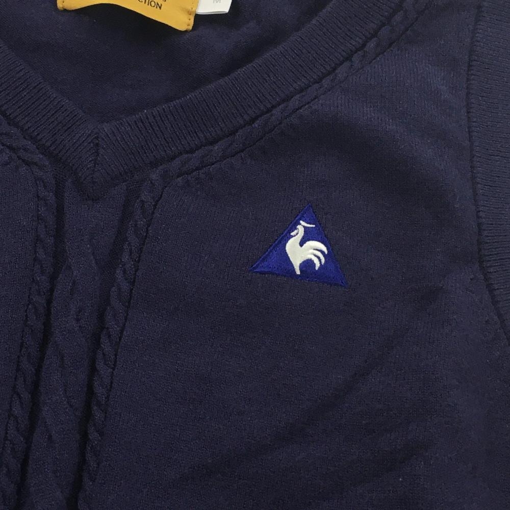 ルコック ニットベスト ネイビー ケーブル編み Vネック ロゴ刺しゅう レディース M ゴルフウェア le coq sportif