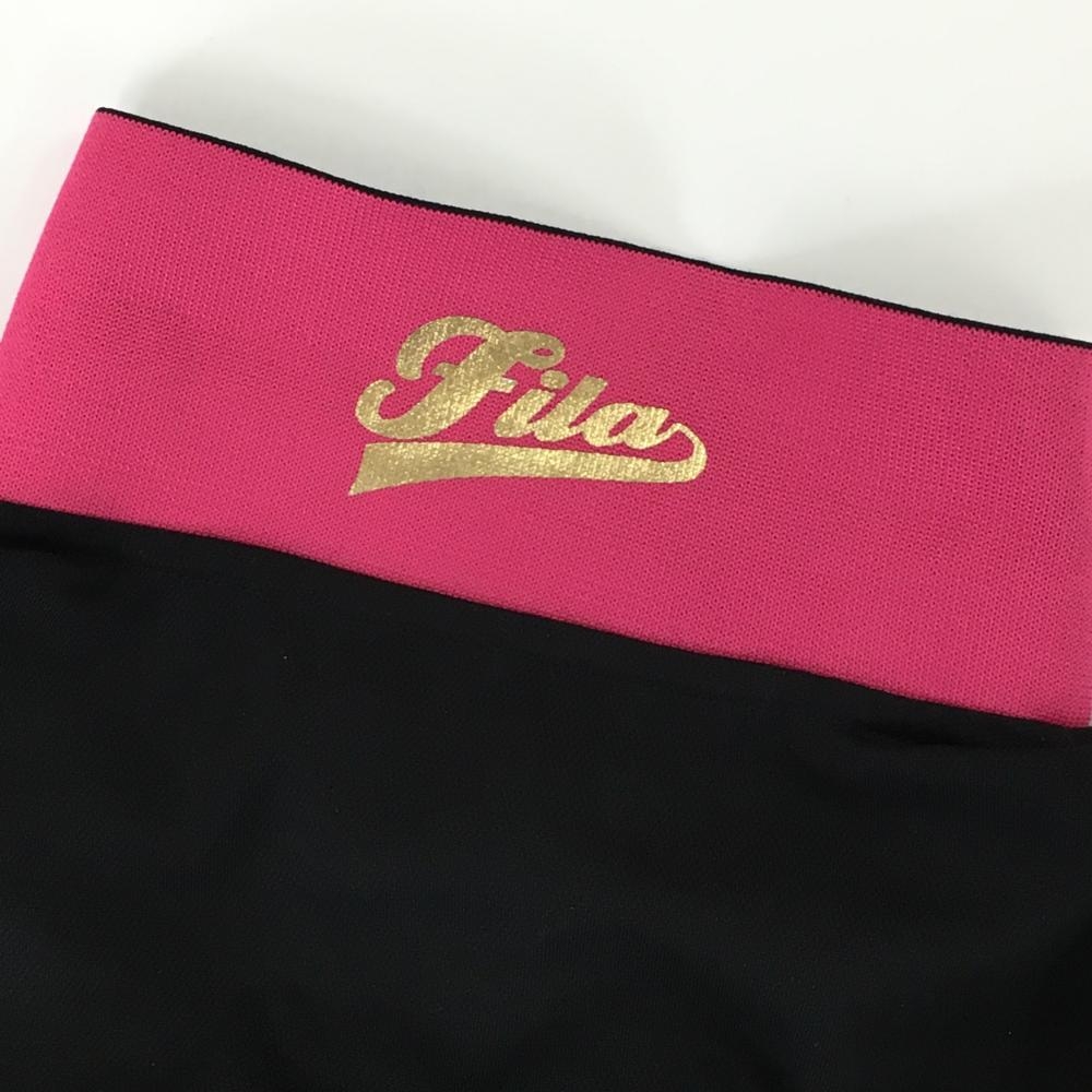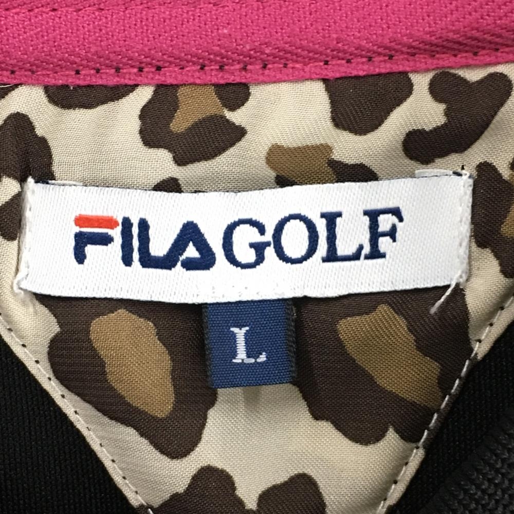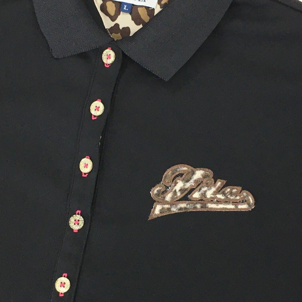 フィラゴルフ 半袖ポロシャツ 黒 襟裏ピンク レディース L ゴルフウェア FILA GOLF