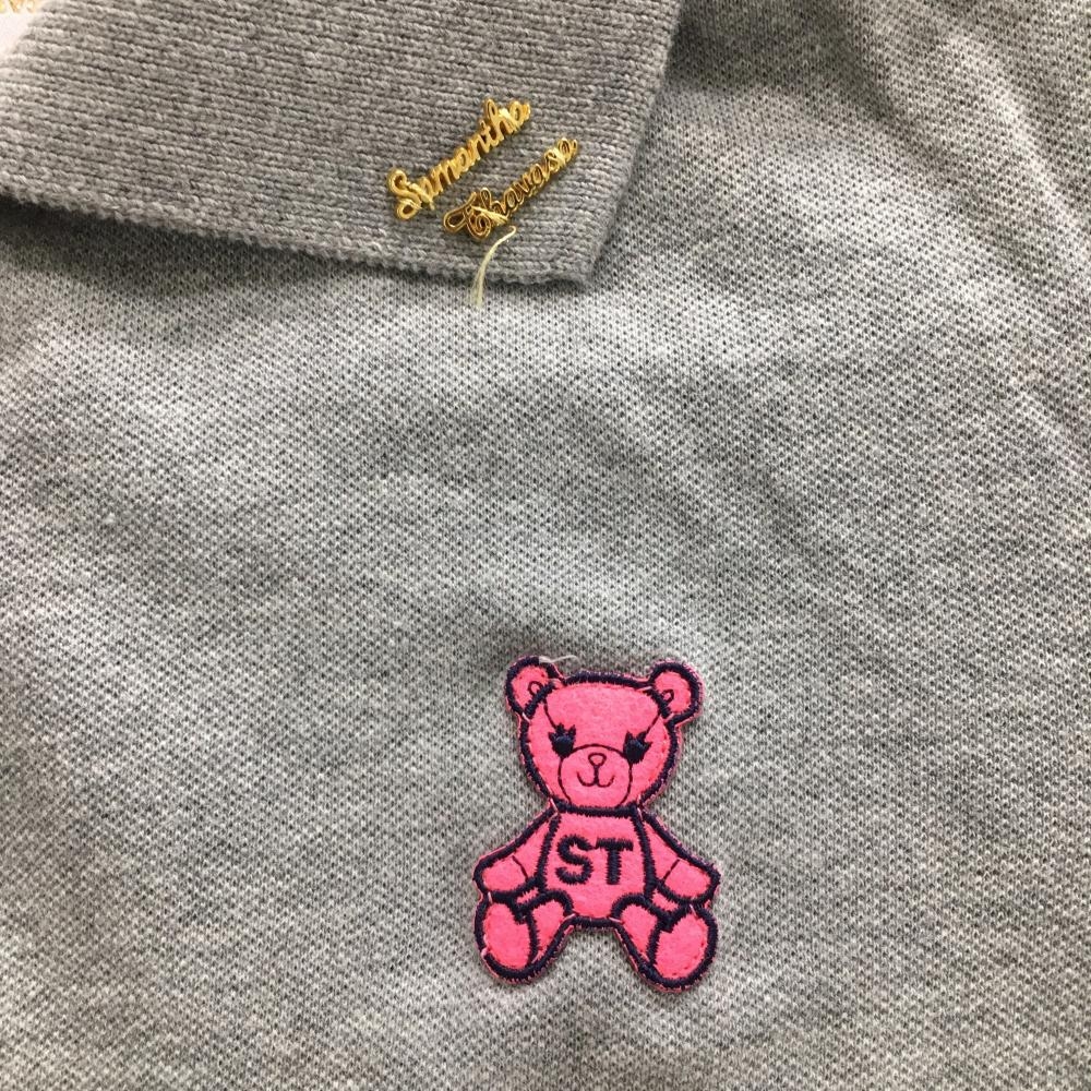 サマンサタバサ UNDER25 半袖ポロシャツ ライトグレー クマワッペン レディース S ゴルフウェア Samantha Thavasa
