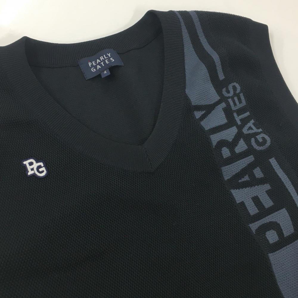 【美品】パーリーゲイツ ニットベスト ダークネイビー×グレー Vネック ロゴ刺しゅう メンズ 4(S) ゴルフウェア 2023年モデル PEARLY GATES