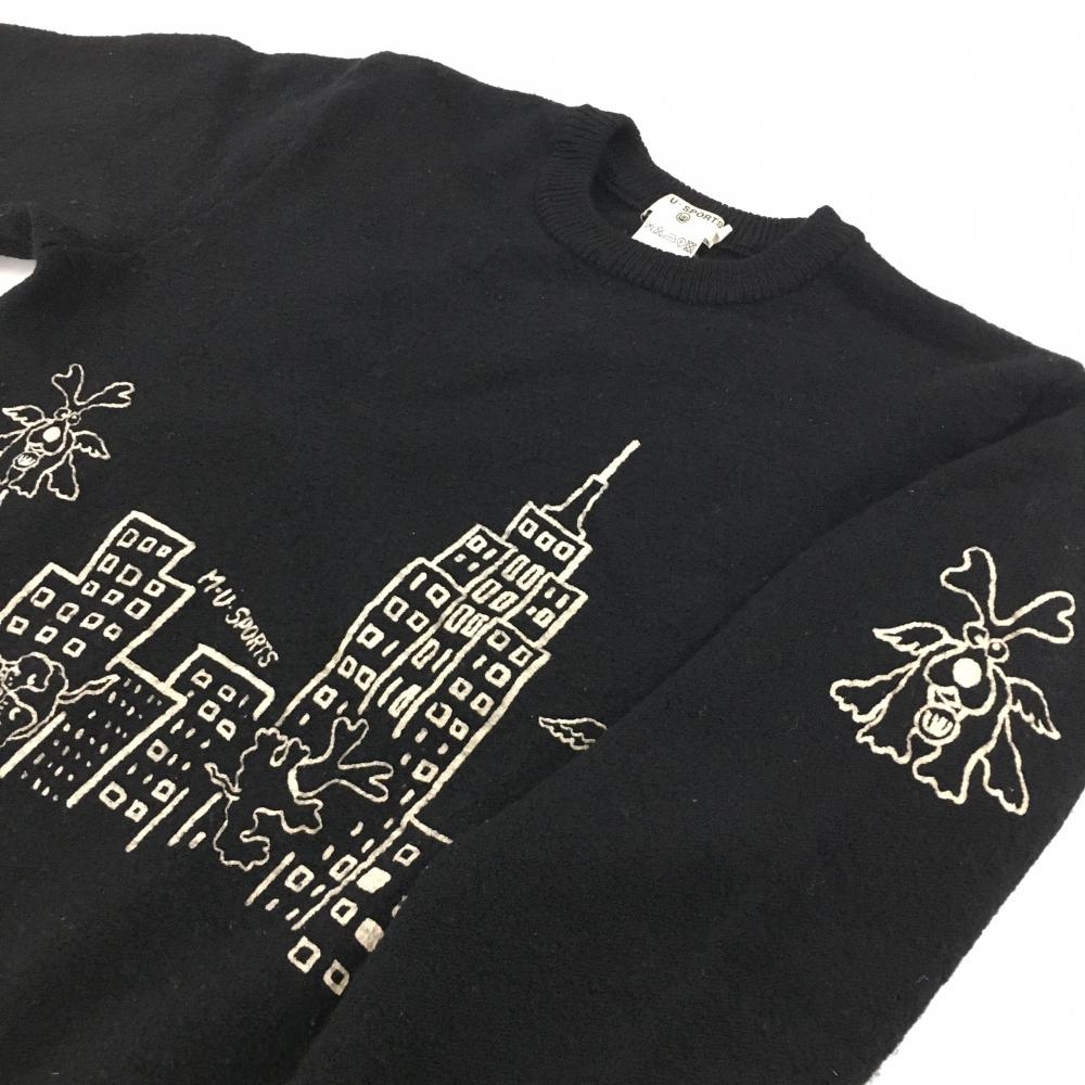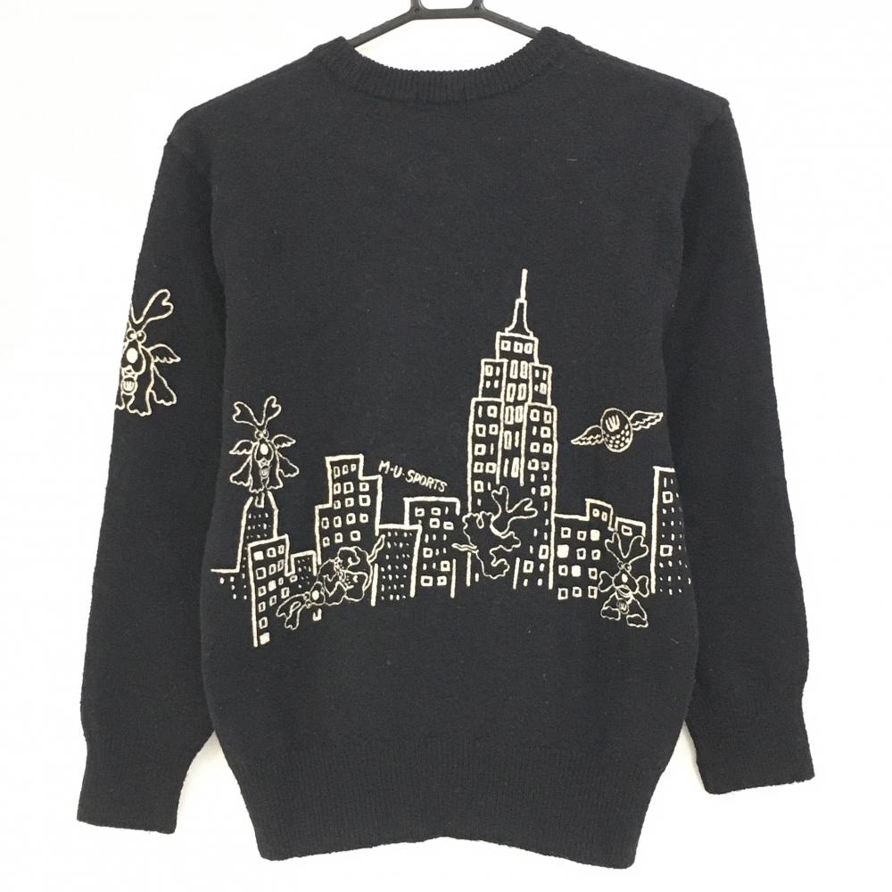 MUスポーツ セーター 黒×白 ビル ニット ウール混 レディース 40(M) ゴルフウェア M・U SPORTS