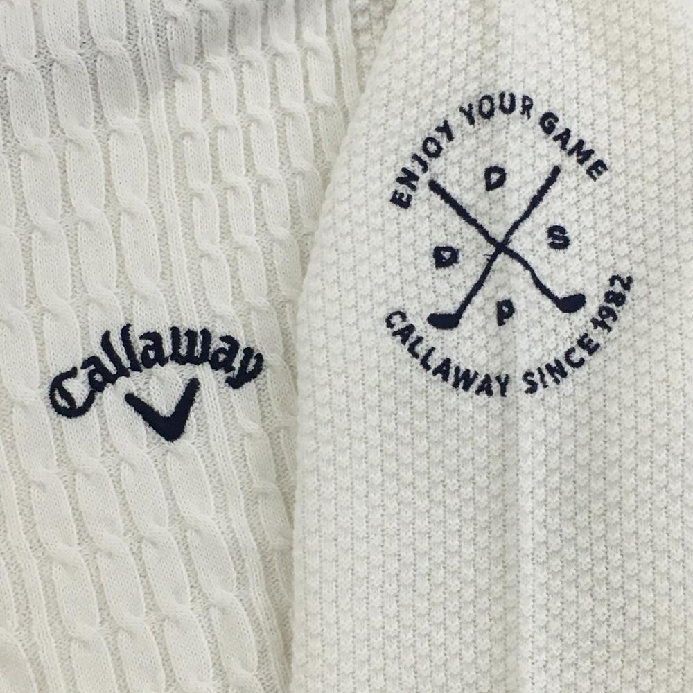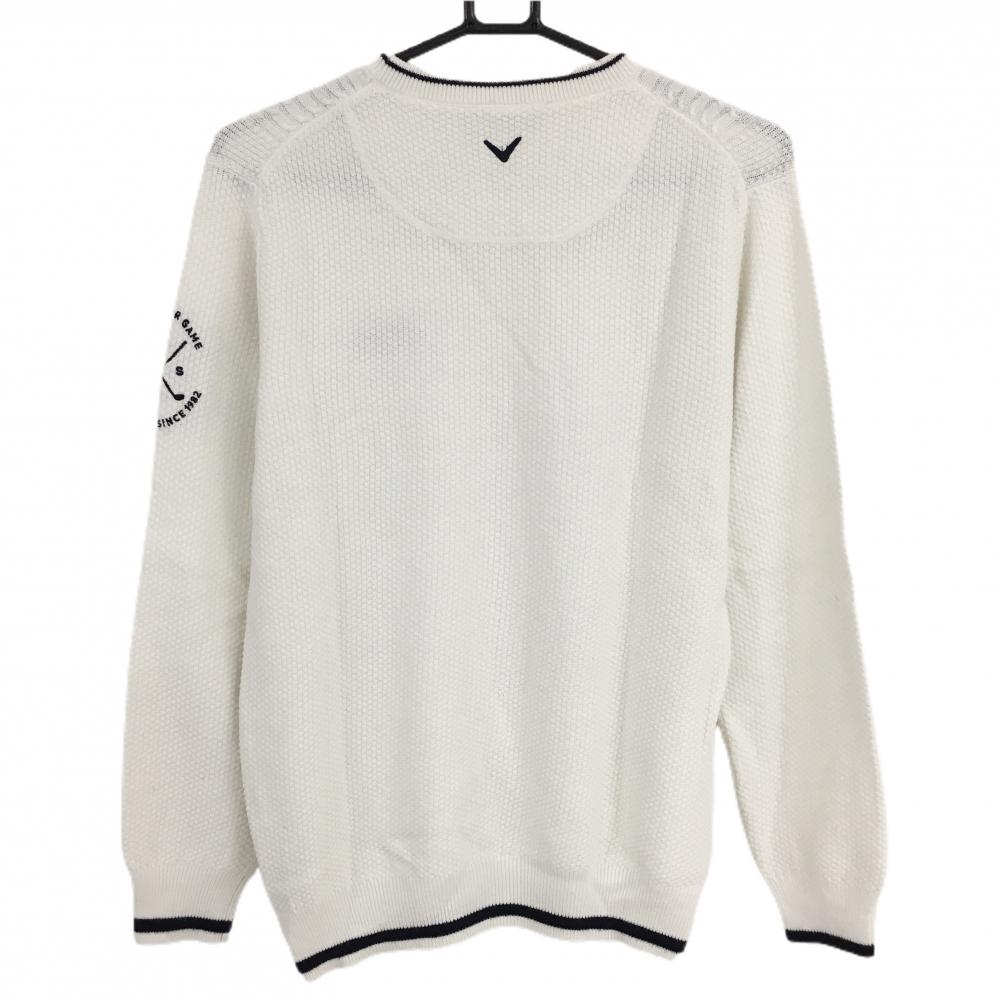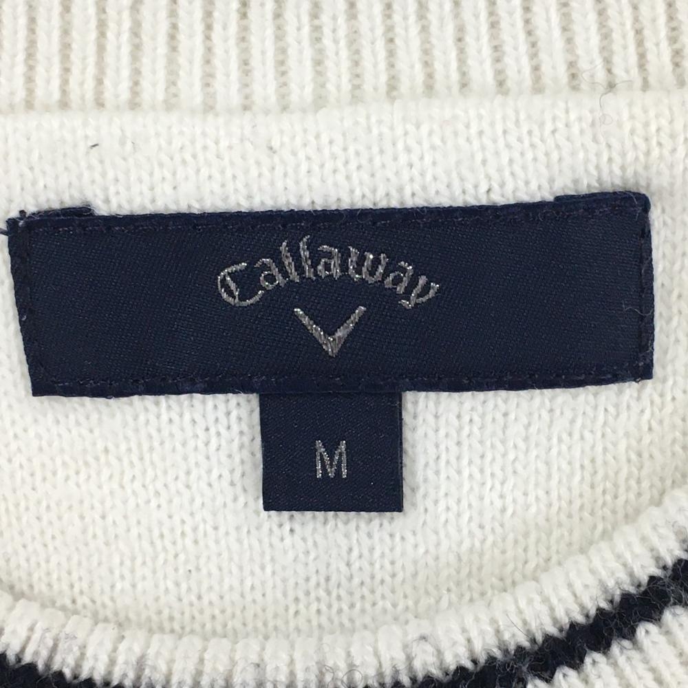 キャロウェイ セーター 白×ネイビー 前身頃ケーブル編み ニット ウール混 メンズ M ゴルフウェア Callaway