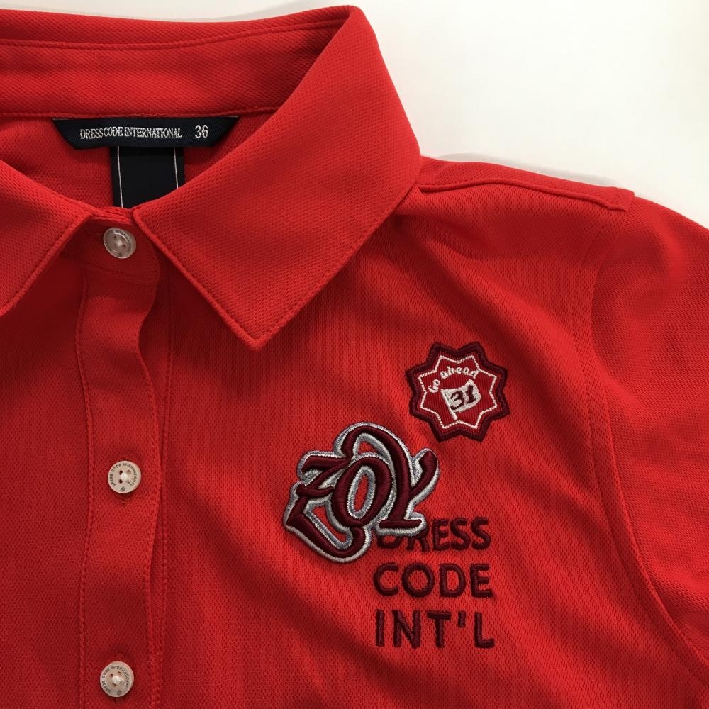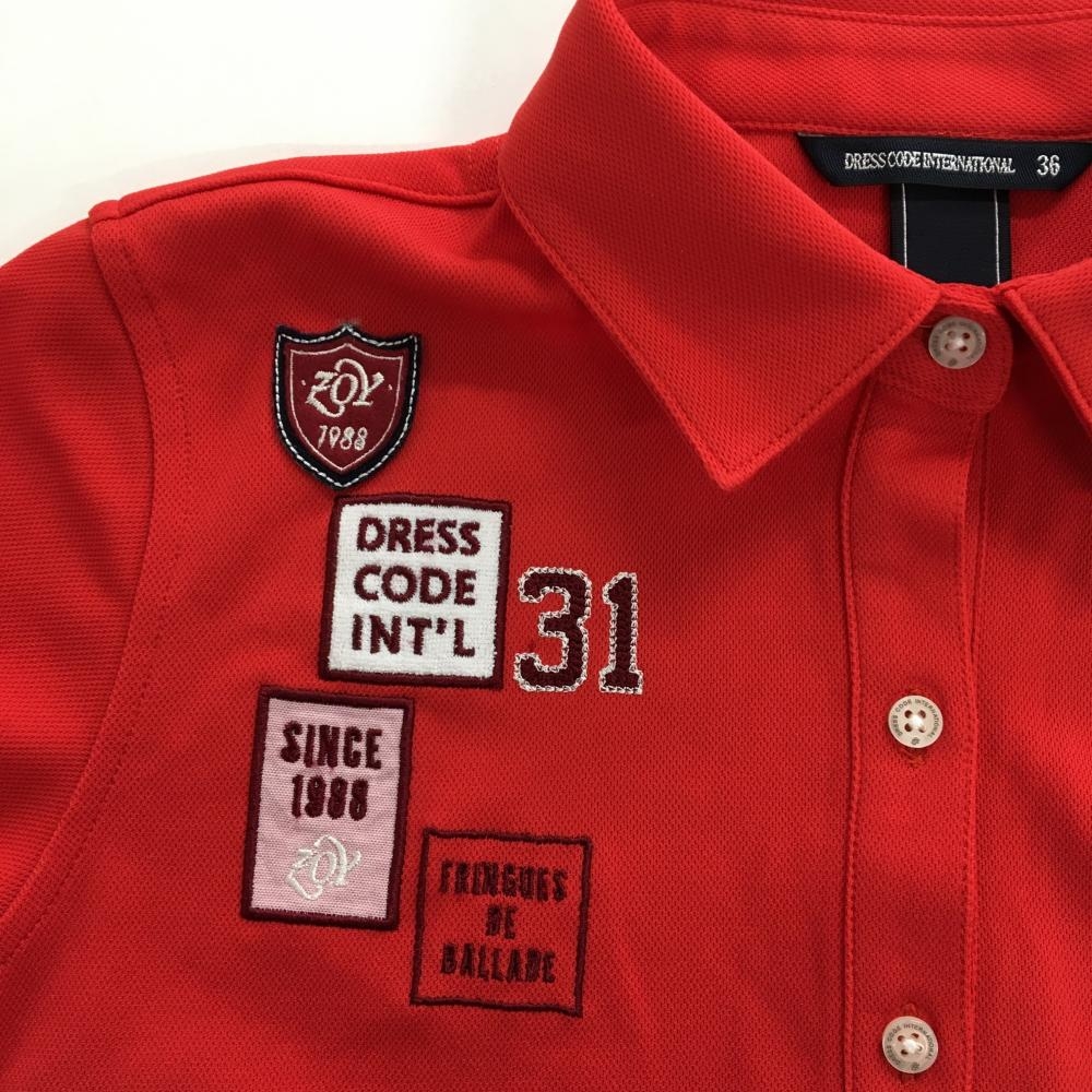 【超美品】ゾーイ 半袖ポロシャツ レッド 複数ワッペン 立体ロゴ レディース 36(S) ゴルフウェア ZOY