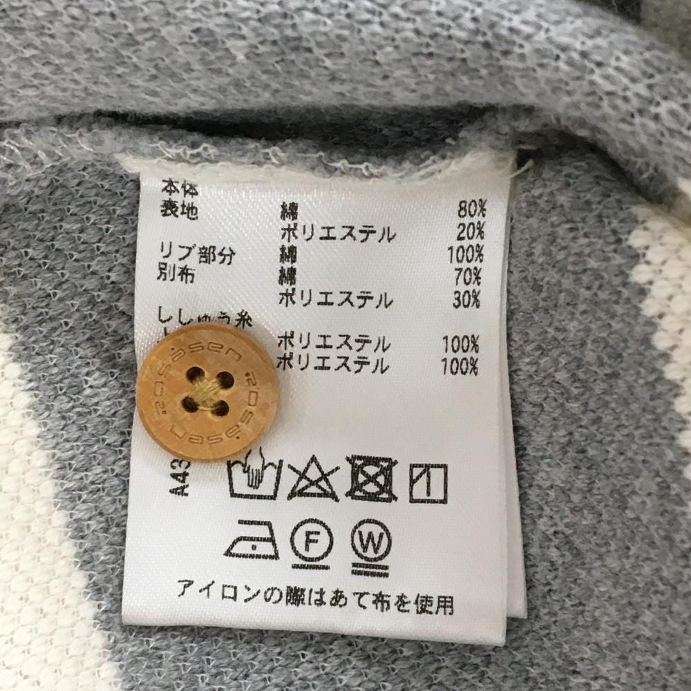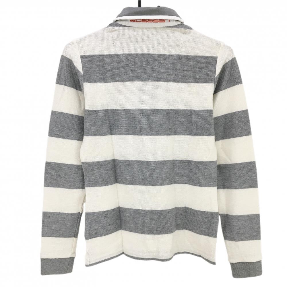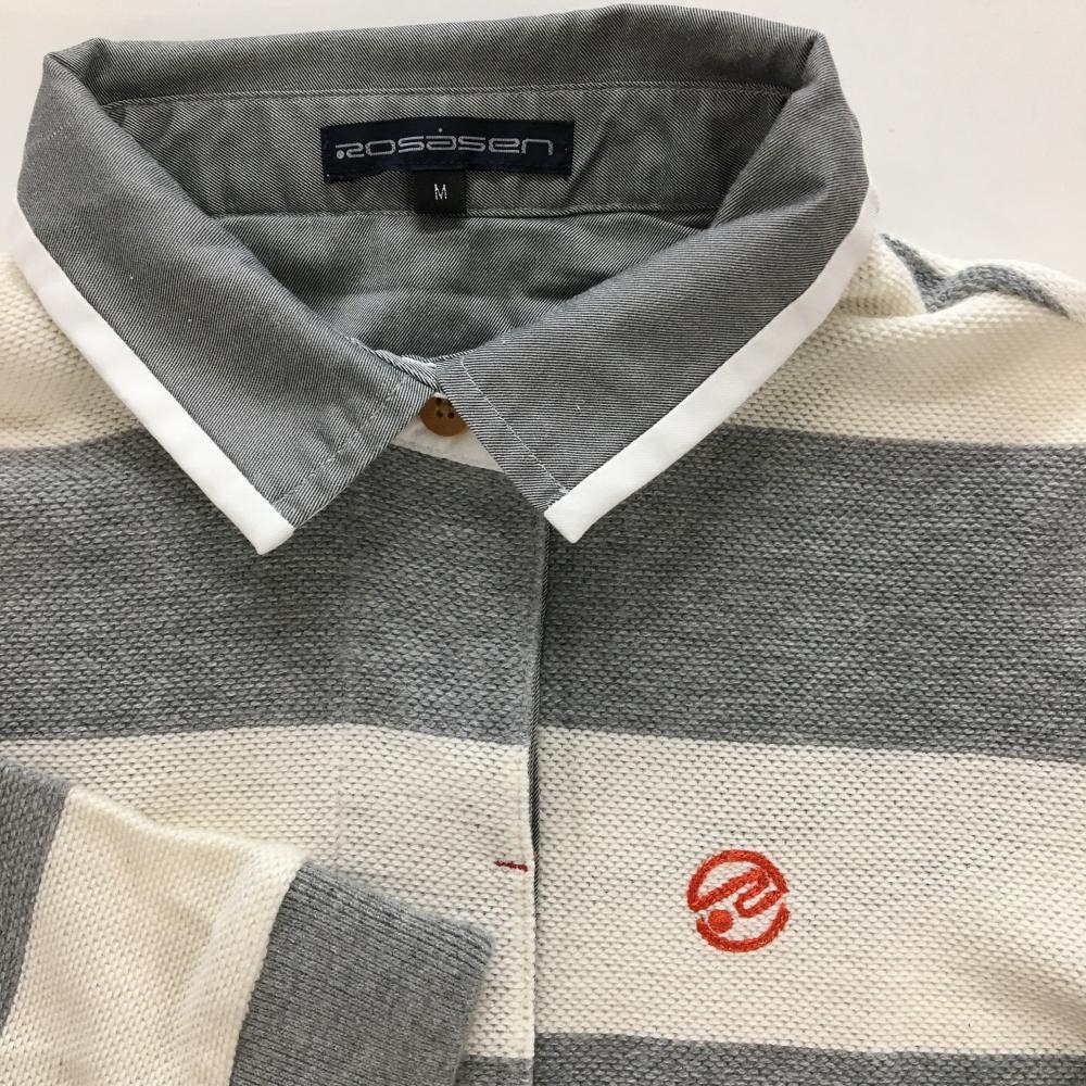 【美品】ロサーセン 長袖ポロシャツ グレー×白 ボーダー ロゴ刺しゅう レディース M ゴルフウェア Rosasen