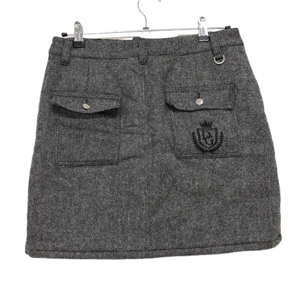 【超美品】デルソル 中綿スカート 黒×白 織生地 ウール混 レディース L ゴルフウェア DELSOL