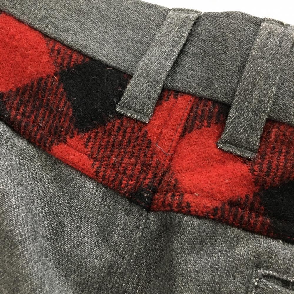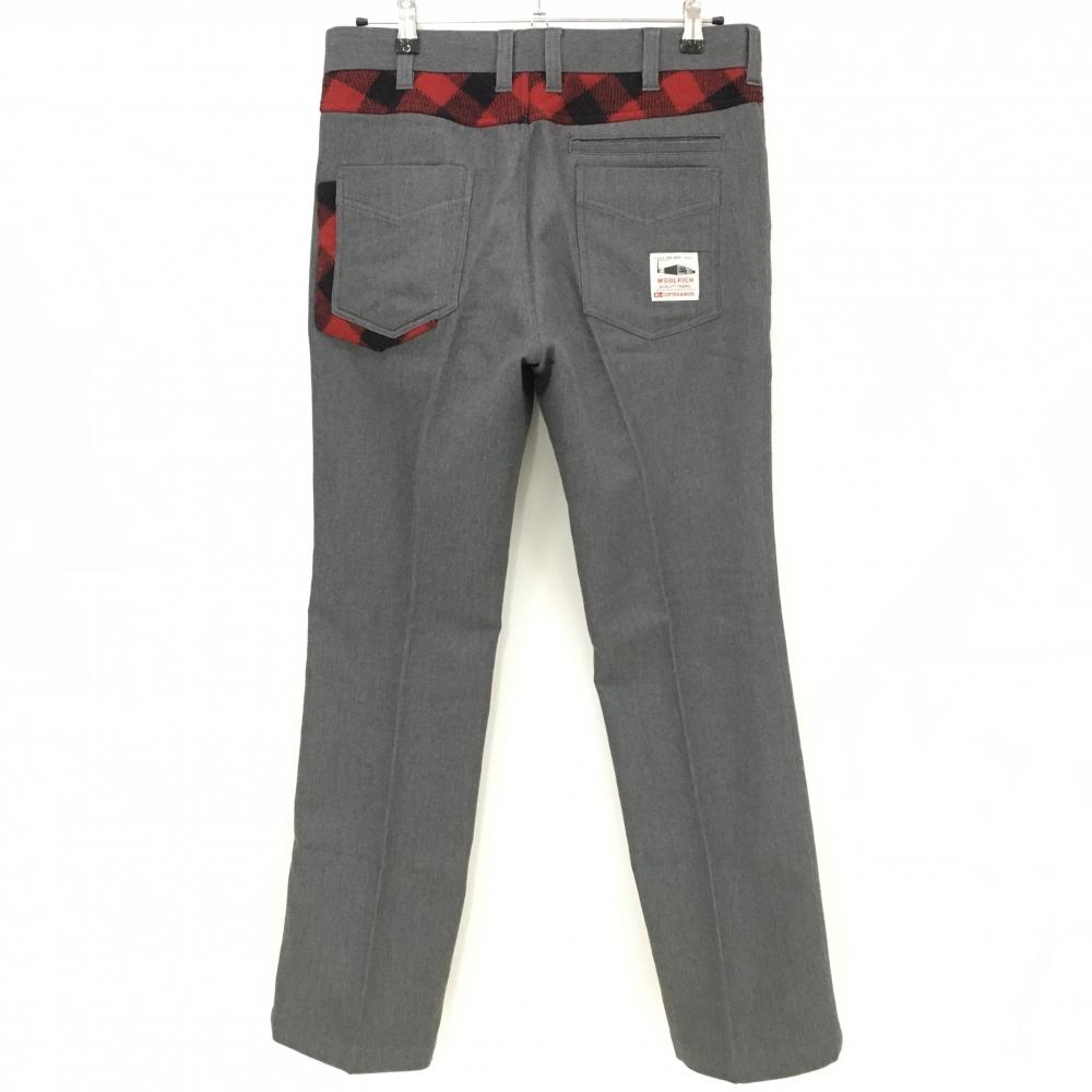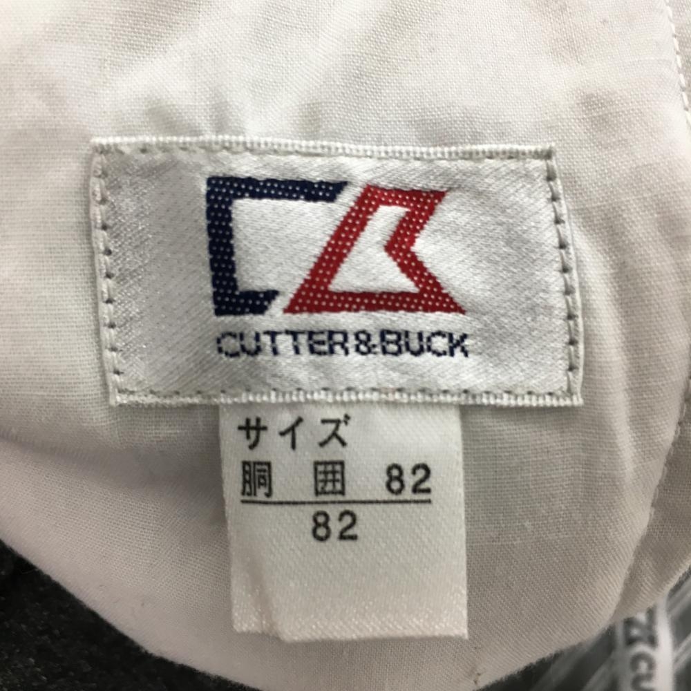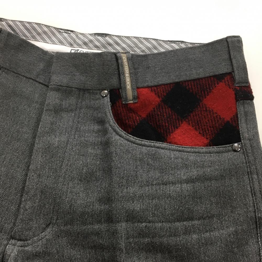 【美品】カッターアンドバック パンツ グレー×レッド 一部チェック柄 切替 ウール混 メンズ 82 ゴルフウェア CUTTER&BUCK