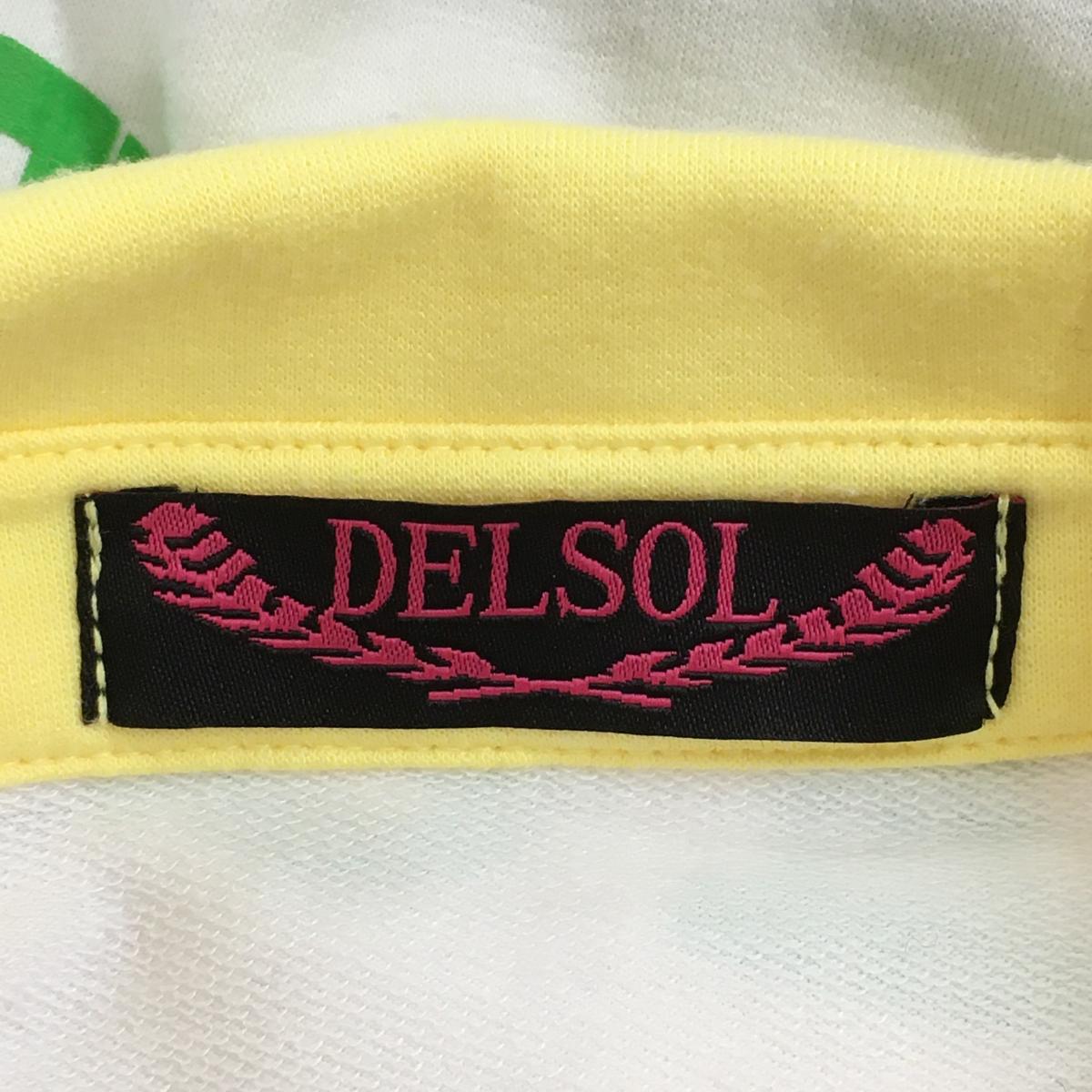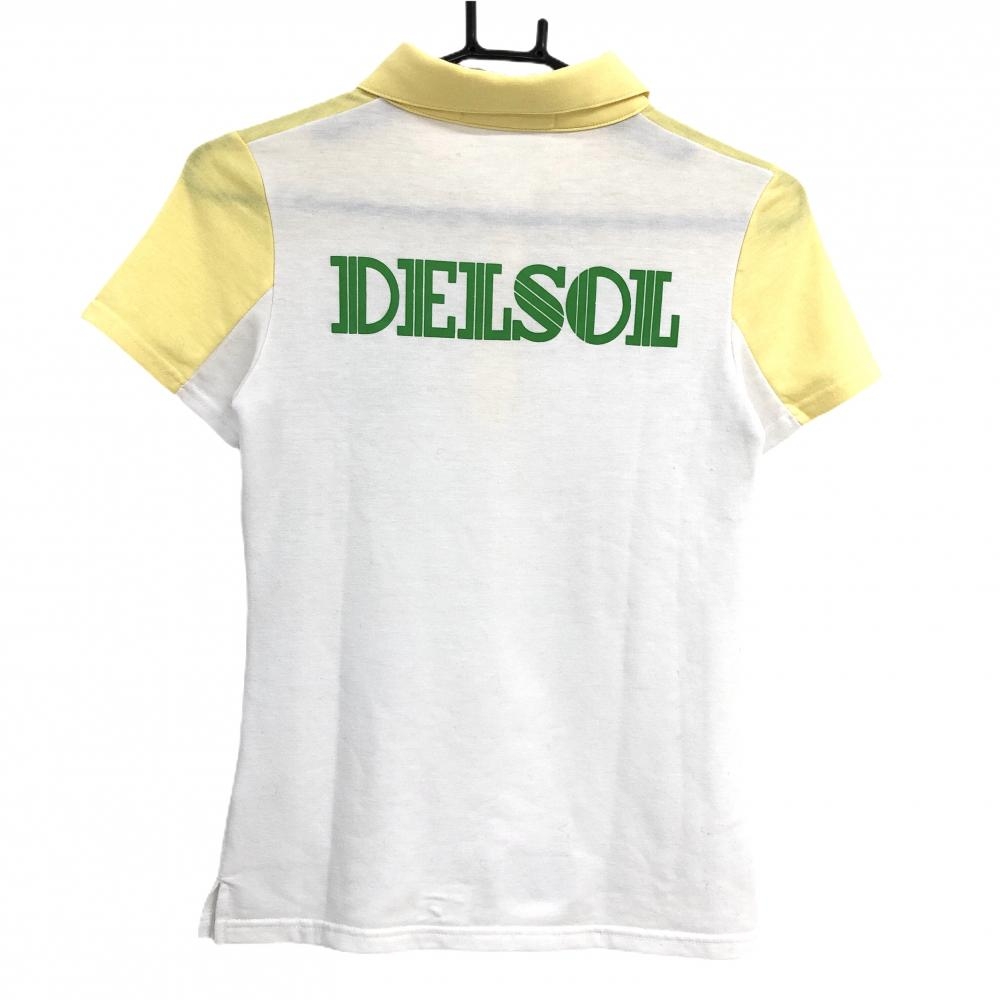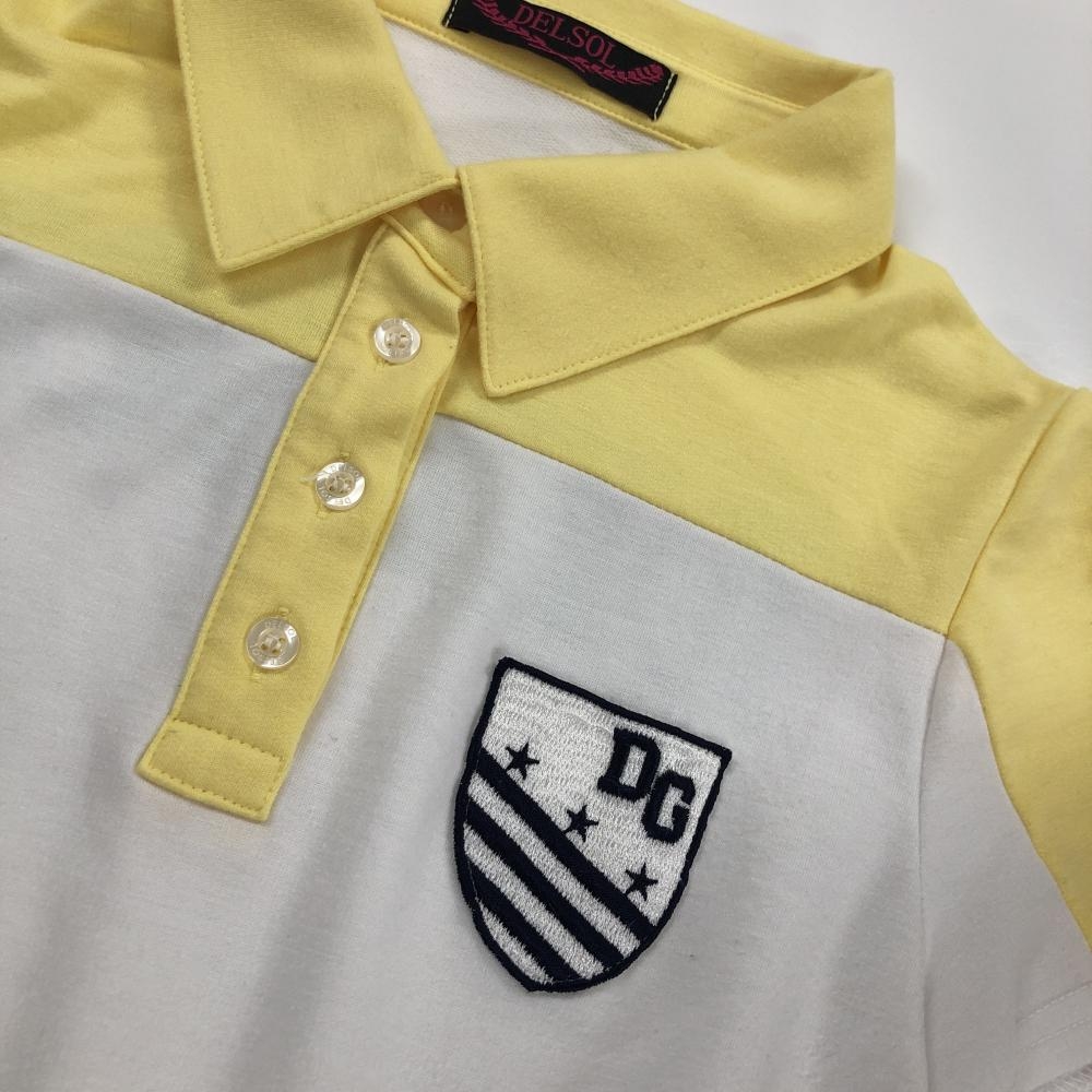 デルソル 半袖ポロシャツ 白×イエロー バイカラー レディース M ゴルフウェア DELSOL