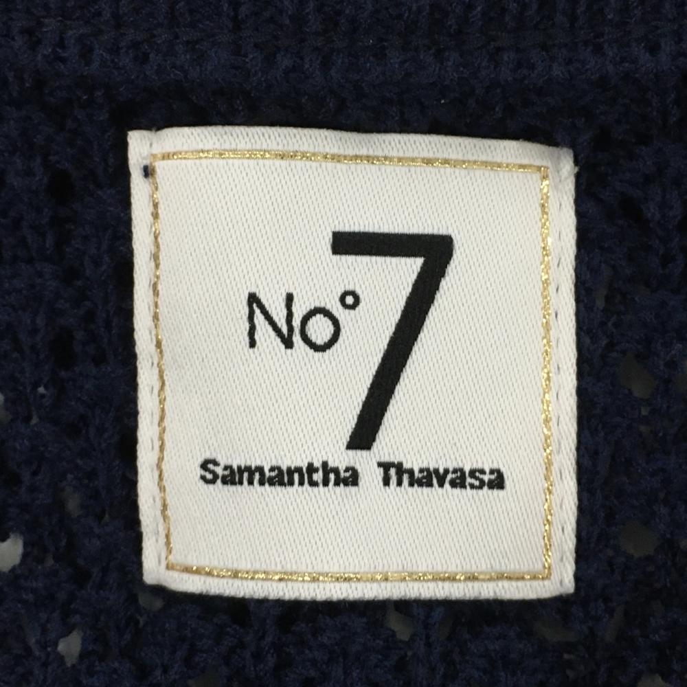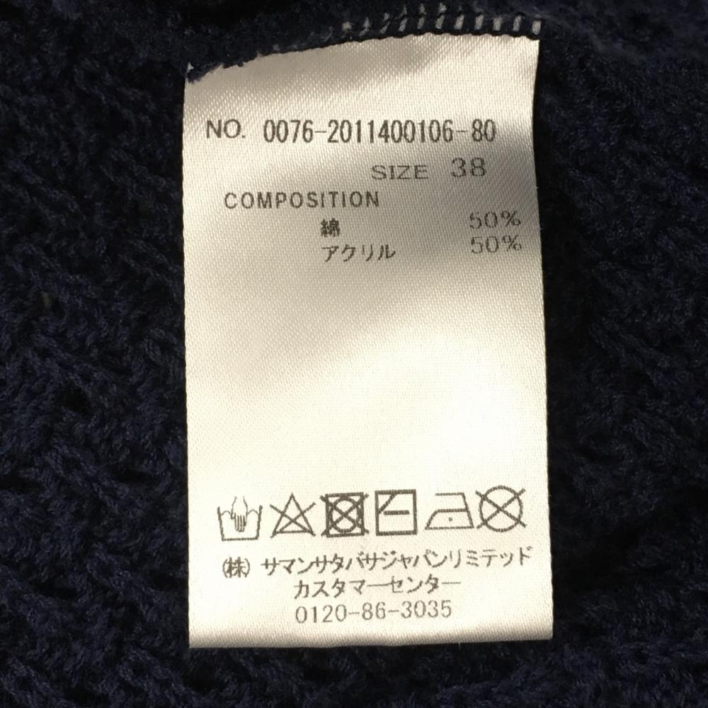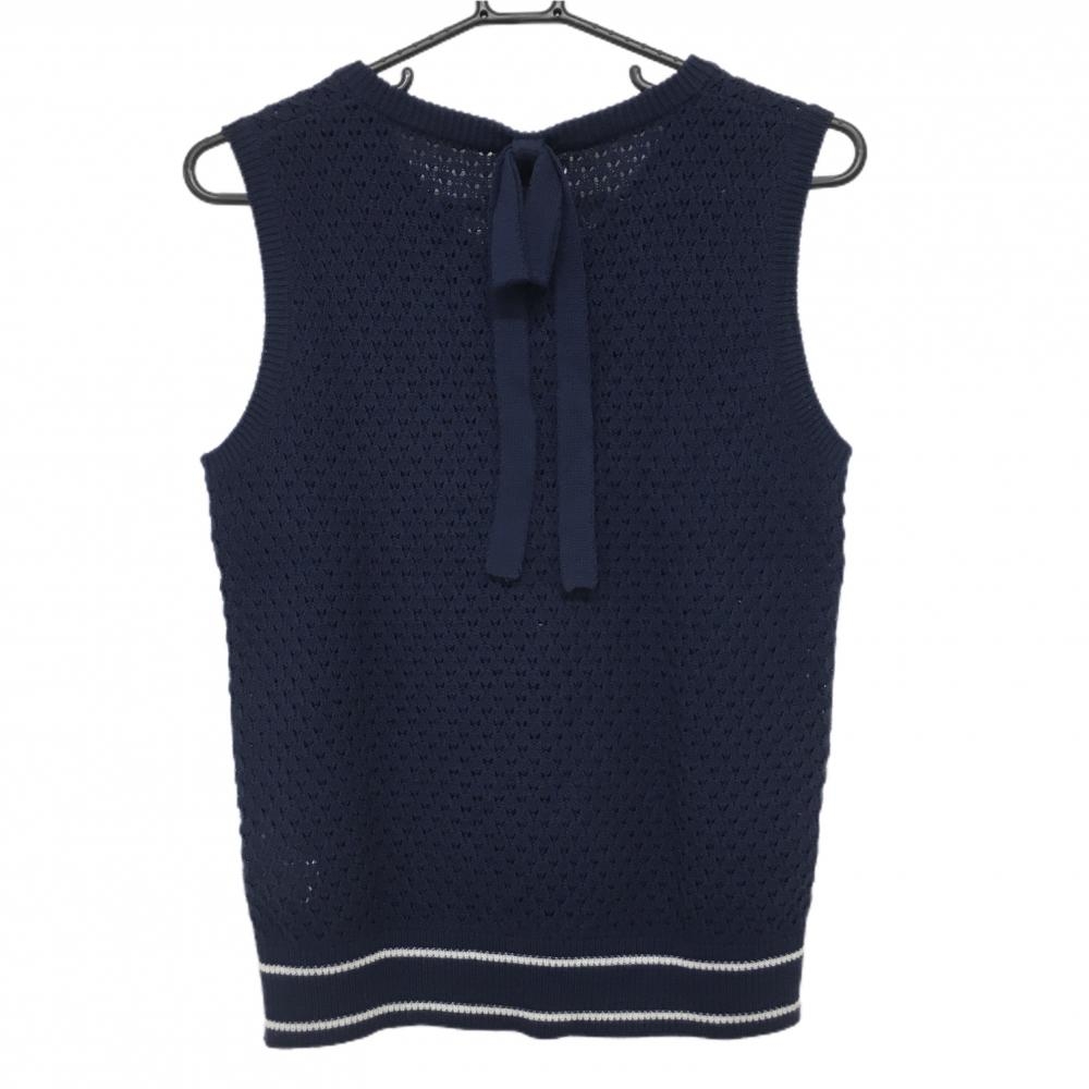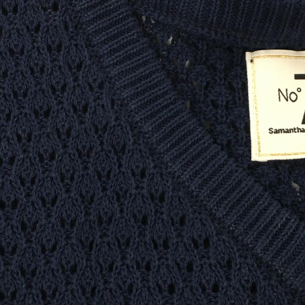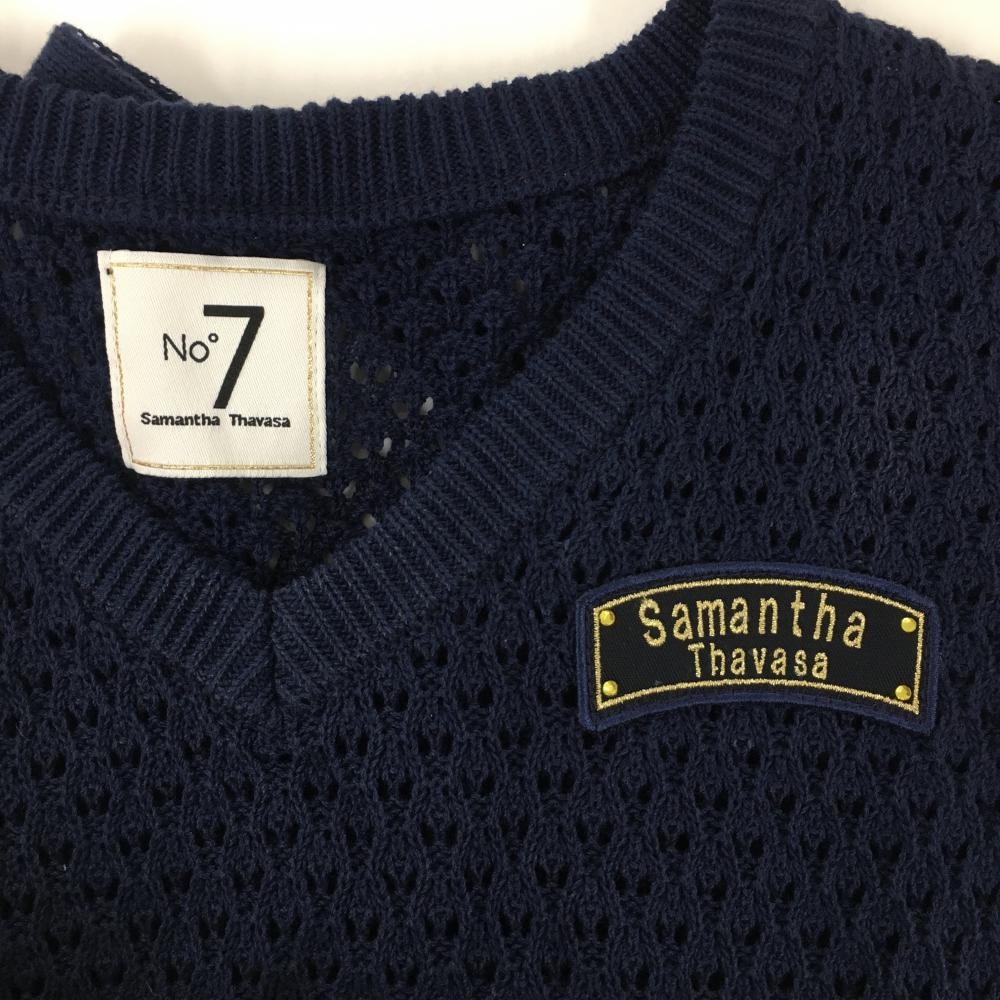 サマンサタバサNo.7 ニットベスト ネイビー×白 透かし編み Vネック レディース 38(M) ゴルフウェア Samantha Thavasa