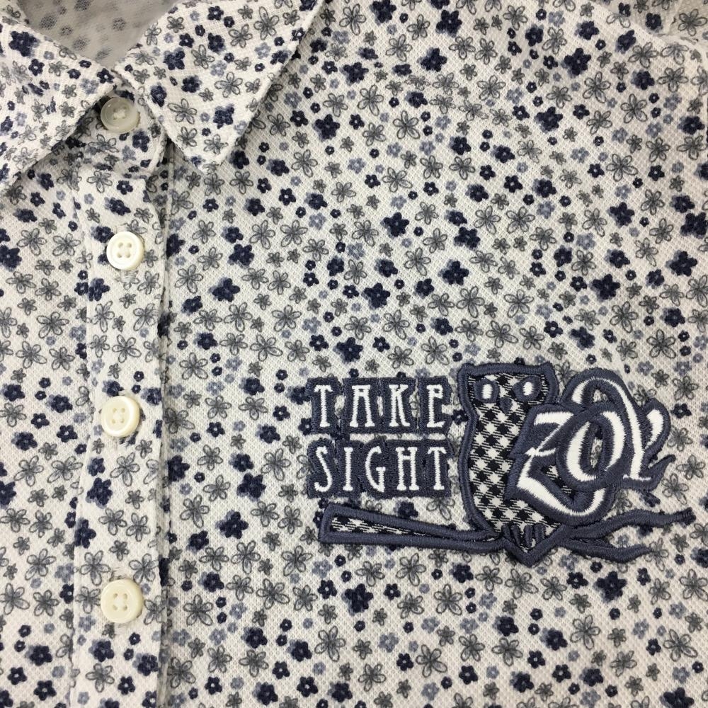 ゾーイ 半袖ポロシャツ 白×ネイビー 小花柄 ロゴ刺しゅう レディース 38(M) ゴルフウェア ZOY