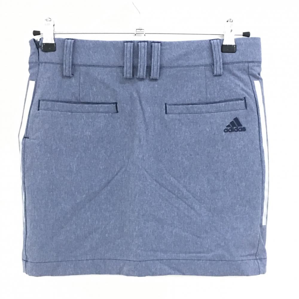【美品】アディダス スカート ネイビー×シルバー サイド3ライン ストレッチ内側インナーパンツ レディース ゴルフウェア adidas