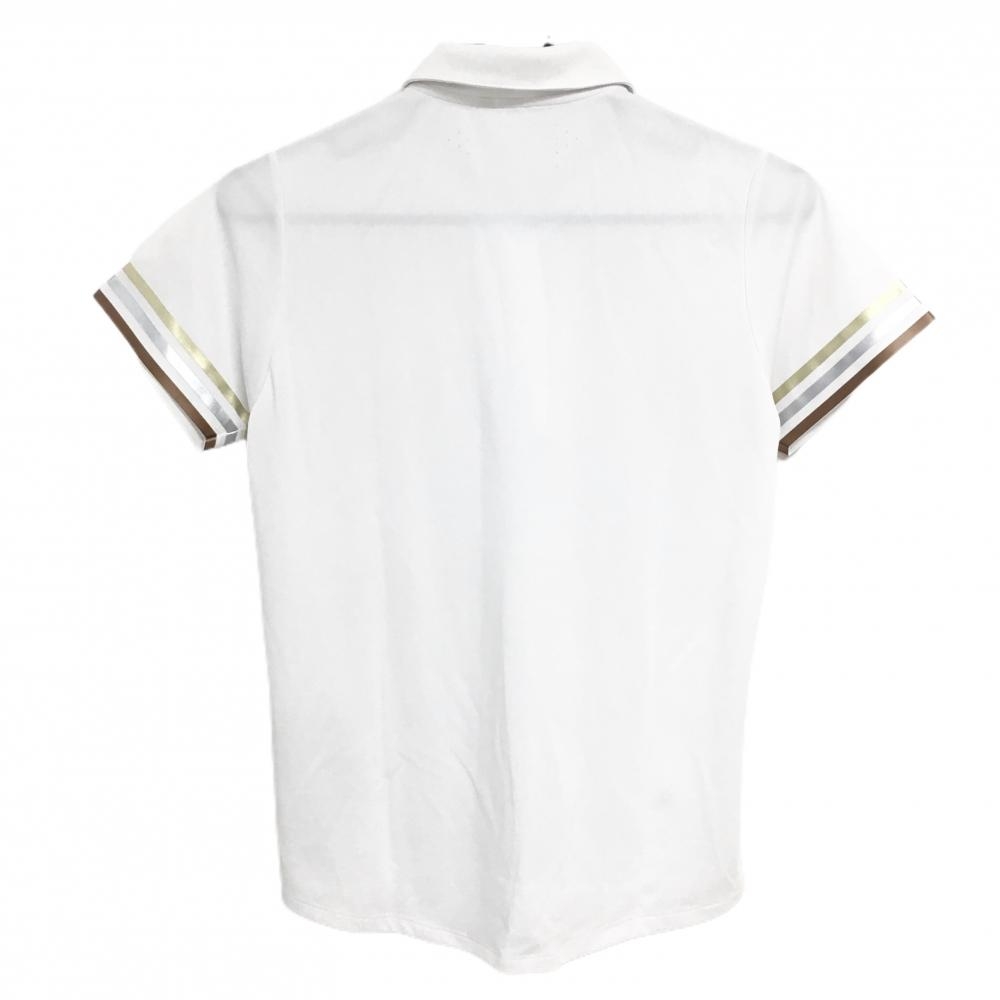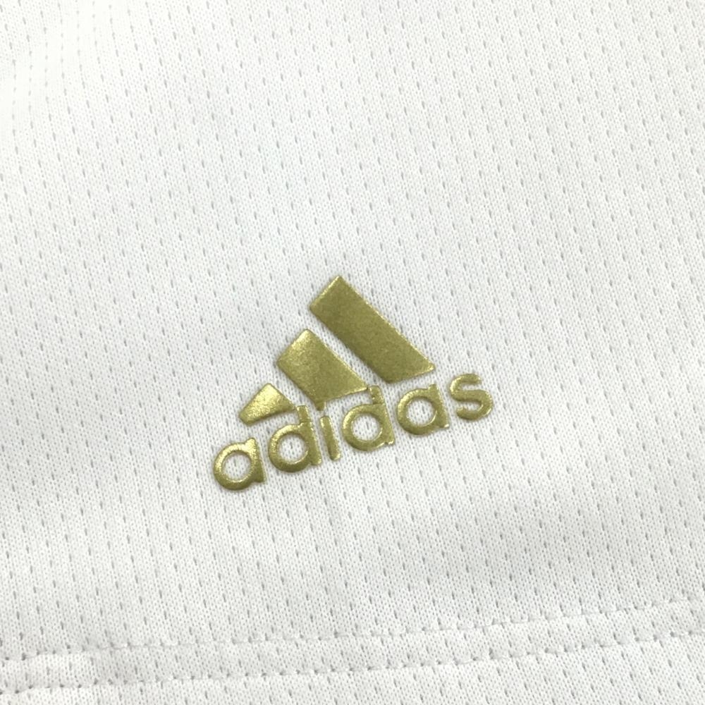 アディダス 半袖ポロシャツ 白×ゴールド 袖ライン レディース L/G ゴルフウェア adidas