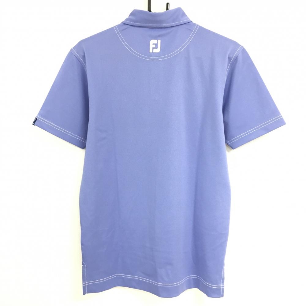 【美品】フットジョイ 半袖ポロシャツ ライトパープル×白 ステッチ メンズ M ゴルフウェア FootJoy
