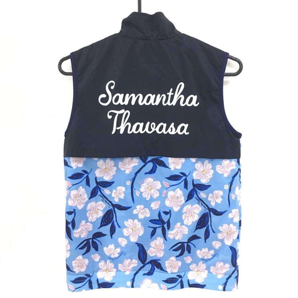 サマンサタバサNo.7 ジップベスト ブルー×ネイビー×ピンク 花柄 裏地メッシュ レディース 38(M) ゴルフウェア Samantha Thavasa