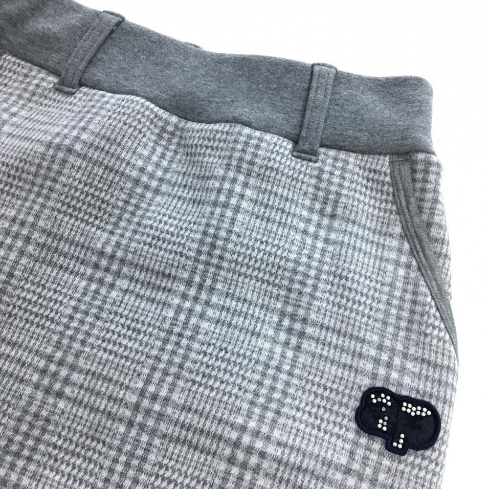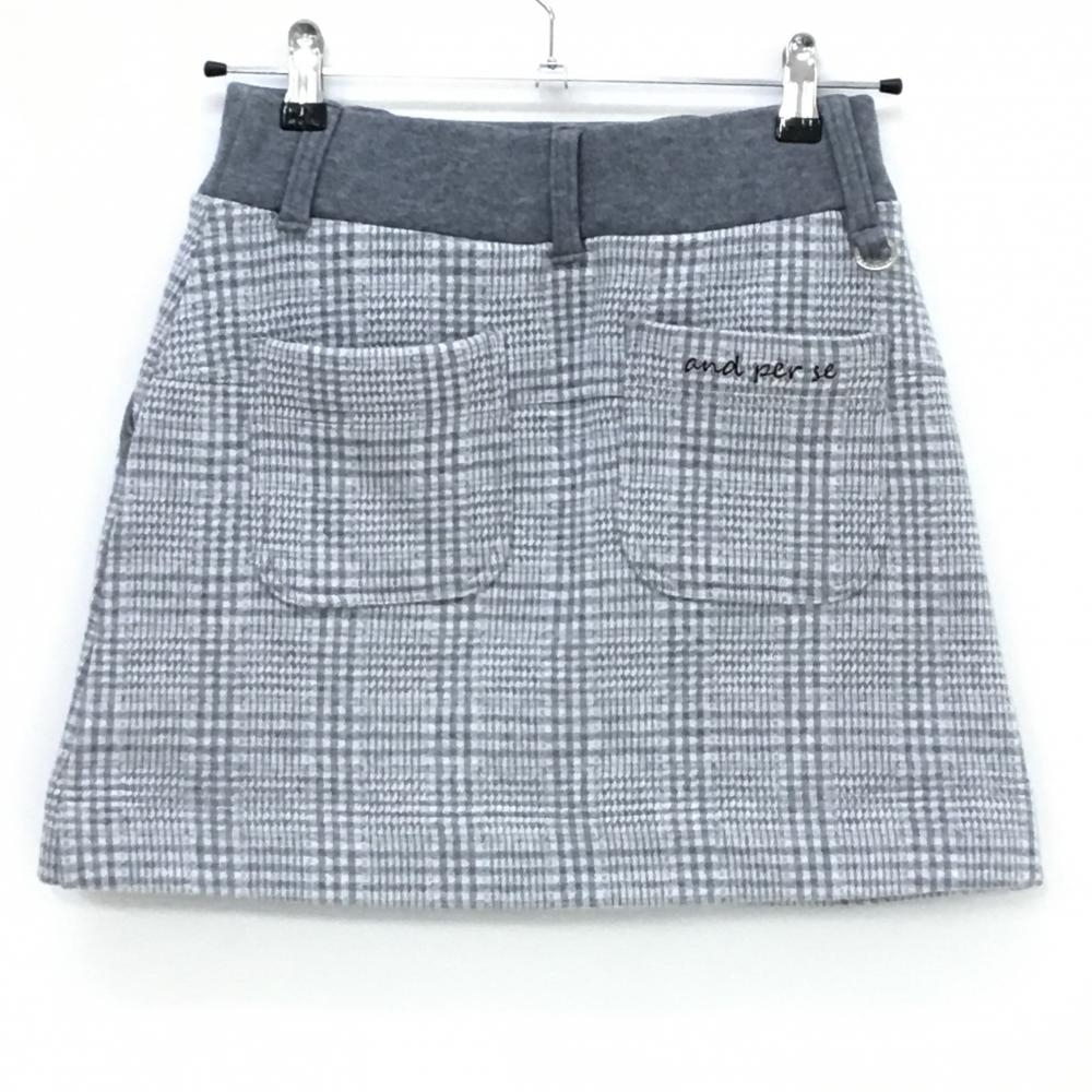 【美品】アンパスィ ニットスカート グレー×白 チェック 裏起毛 ウエストゴム レディース S ゴルフウェア and per se