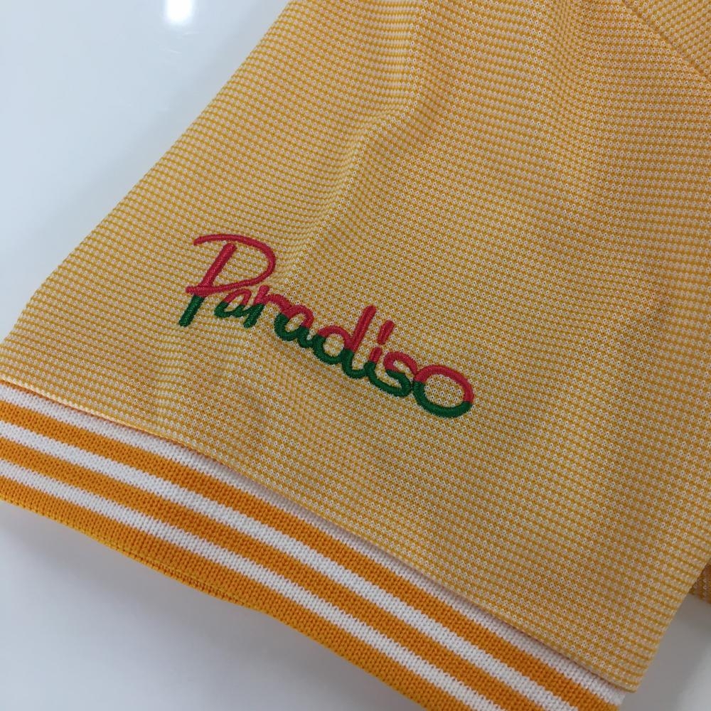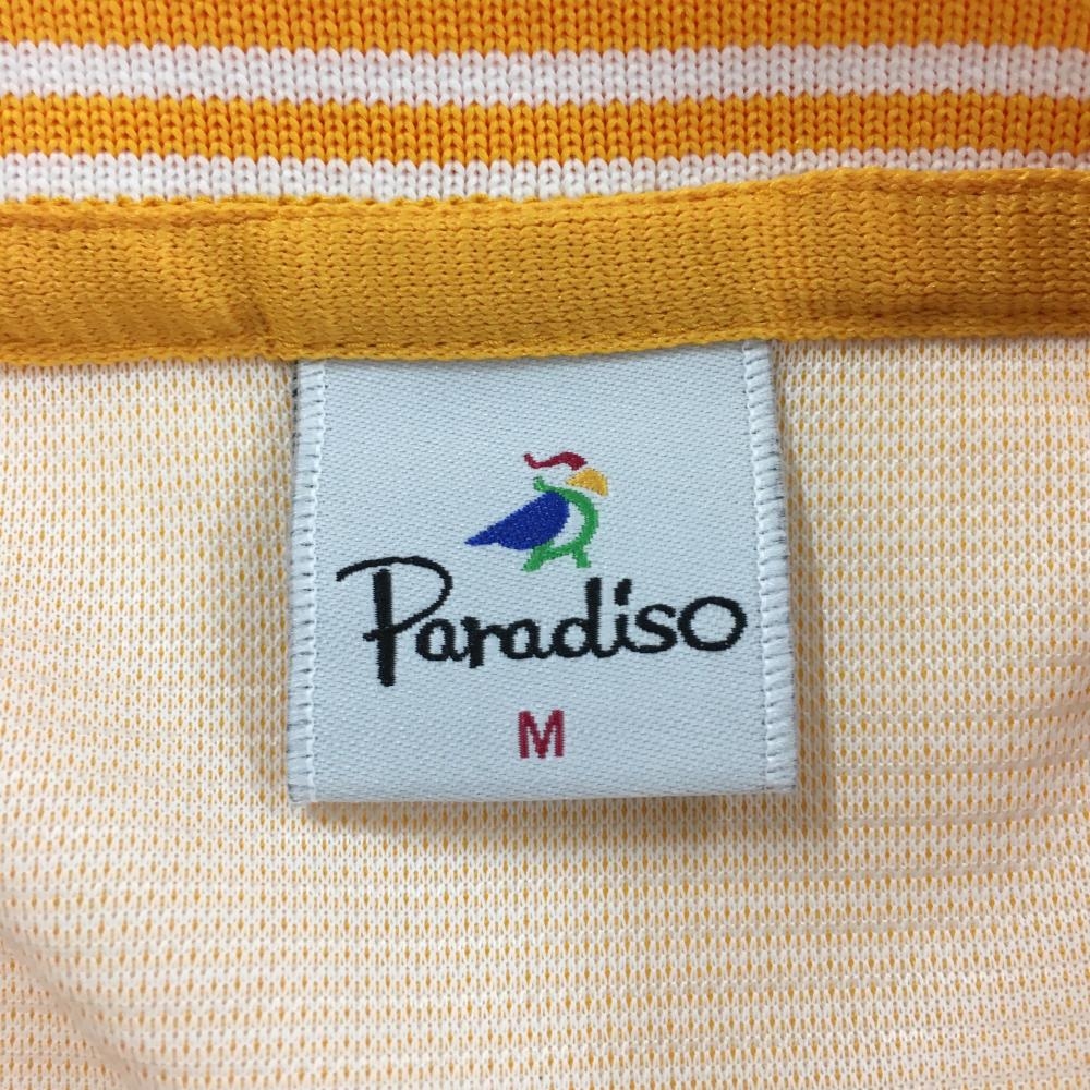 パラディーゾ 半袖ポロシャツ オレンジ 織生地 襟袖口ボーダー レディース M ゴルフウェア Paradiso