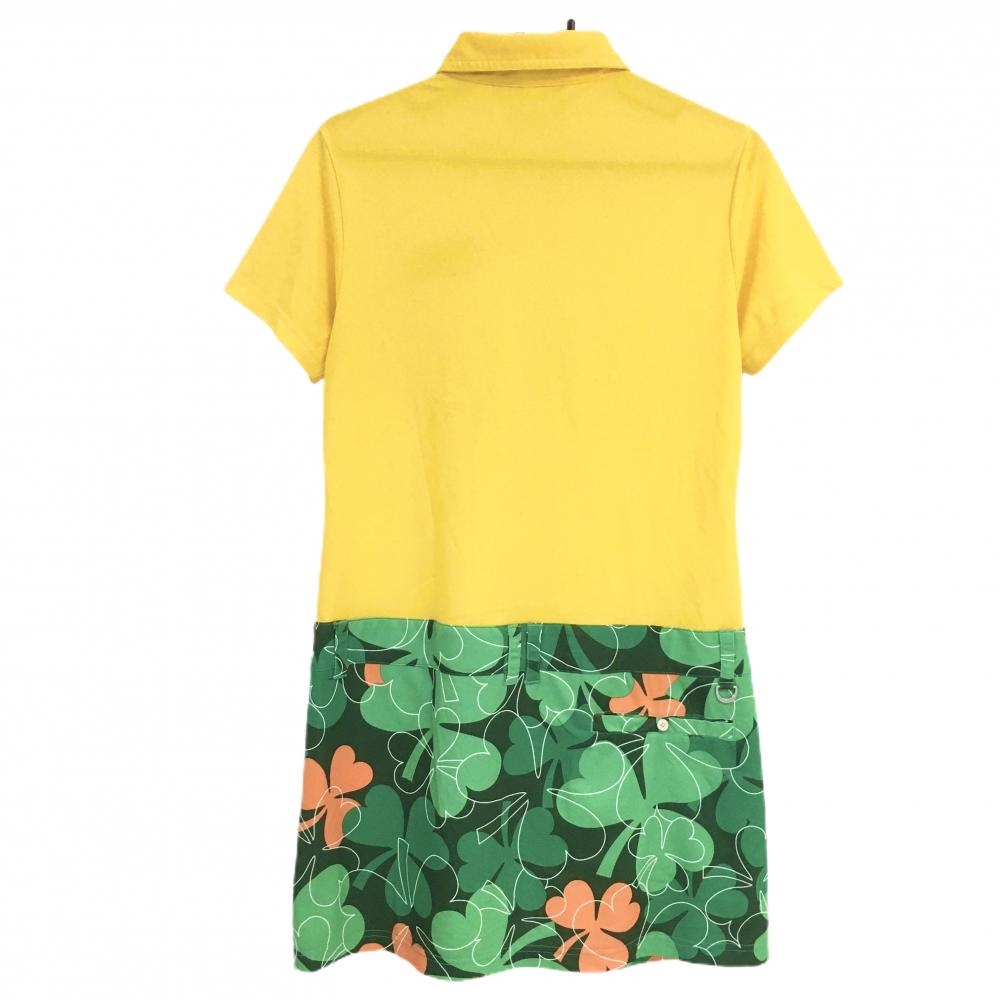 ラウドマウス 半袖ポロワンピース イエロー×グリーン スカートクローバー柄 ラッキーオレンジ レディース LL ゴルフウェア LOUDMOUTH