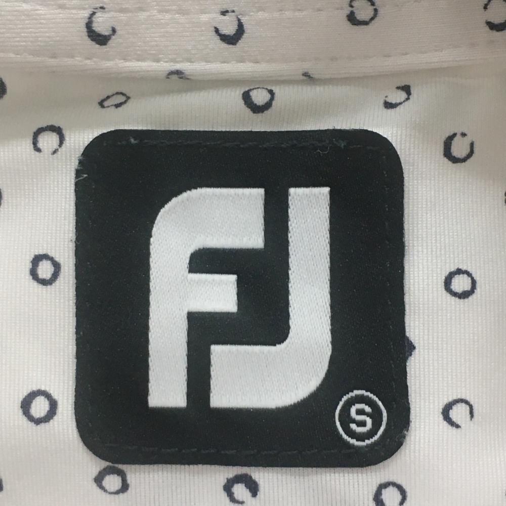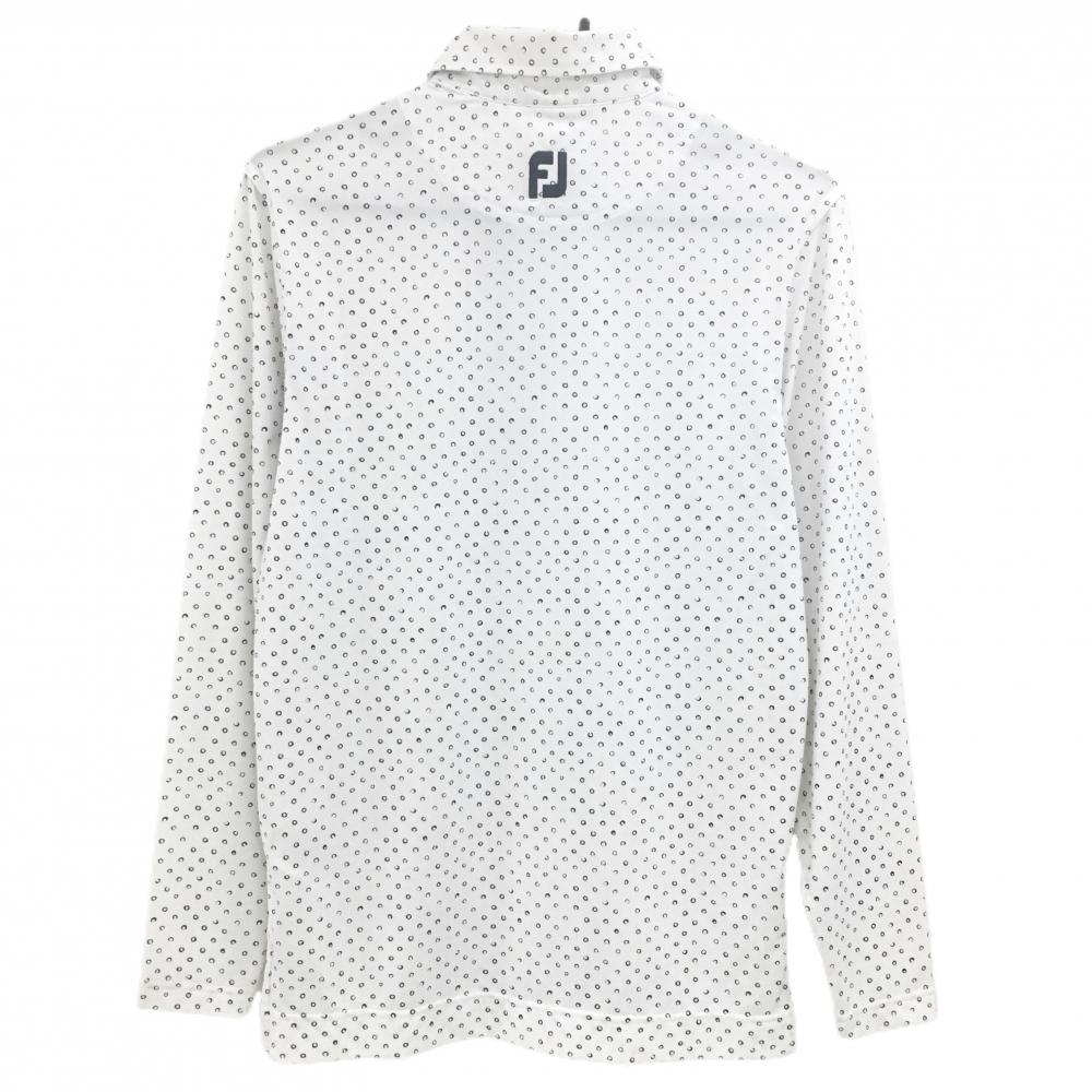 【超美品】フットジョイ 長袖ポロシャツ 白×ネイビー 線書きドット 襟ロゴ刺しゅう メンズ S ゴルフウェア FootJoy