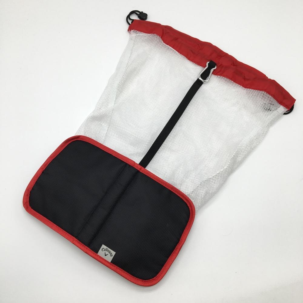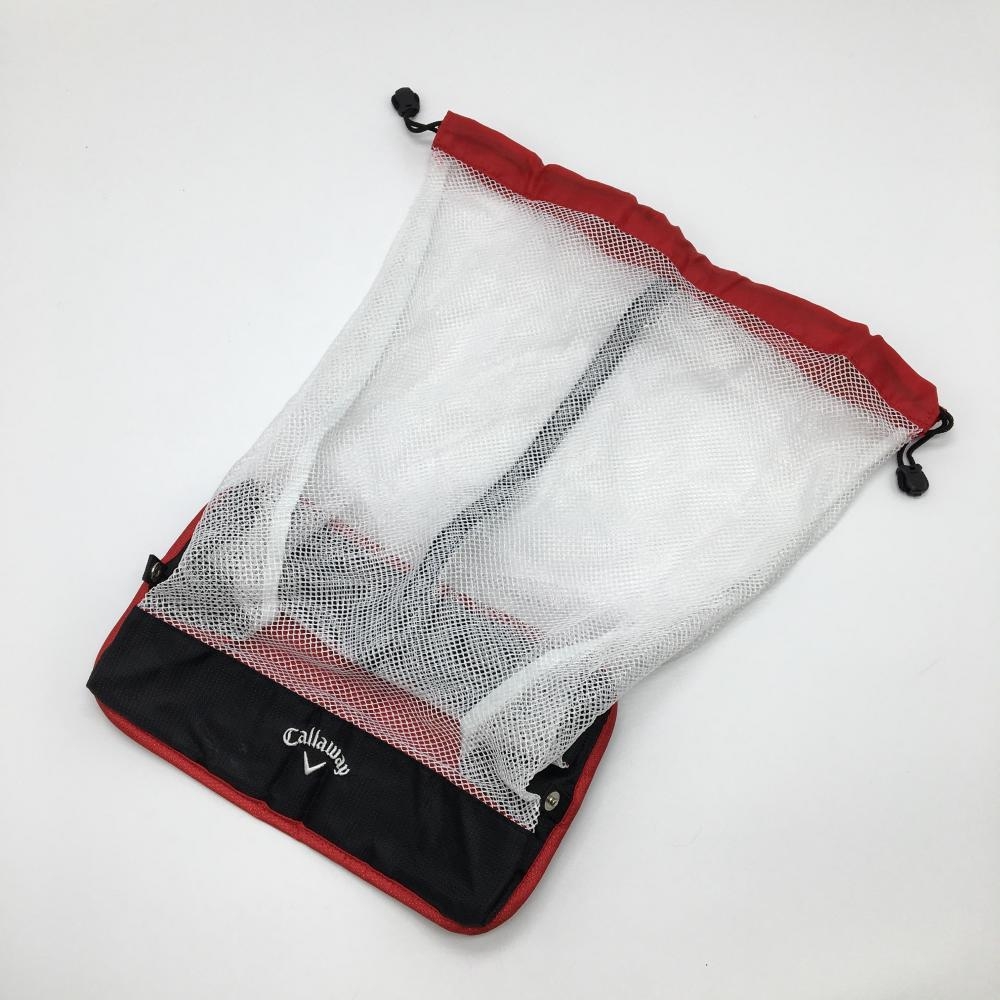 【美品】キャロウェイ 折り畳みメッシュバッグ 黒×レッド ロゴ刺しゅう ゴルフ Callaway