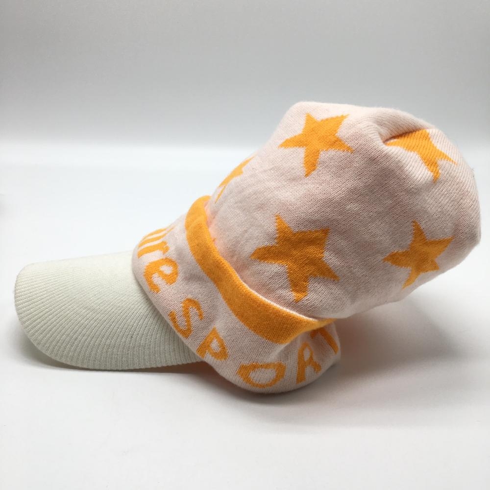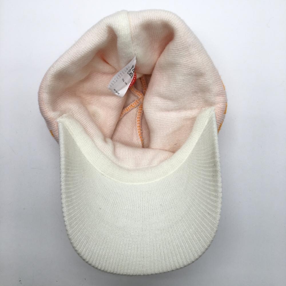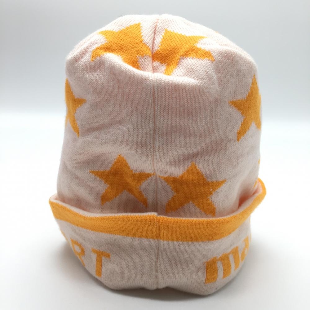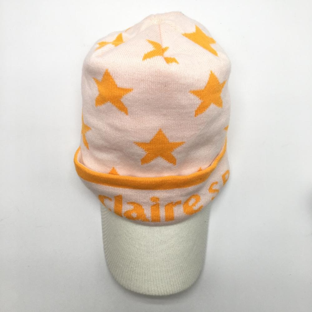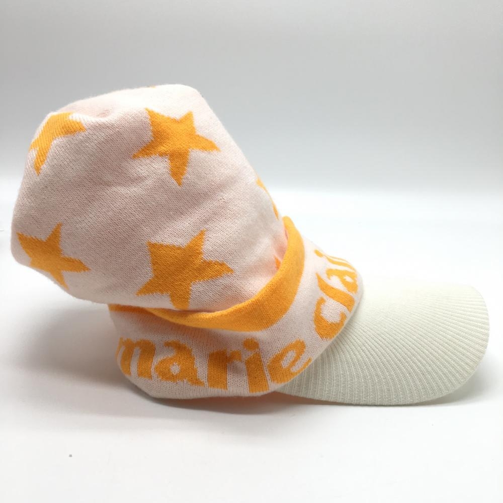 【超美品】マリクレールスポーツ つば付きニット帽 白×オレンジ 星柄 表記なし ゴルフウェア marie claire