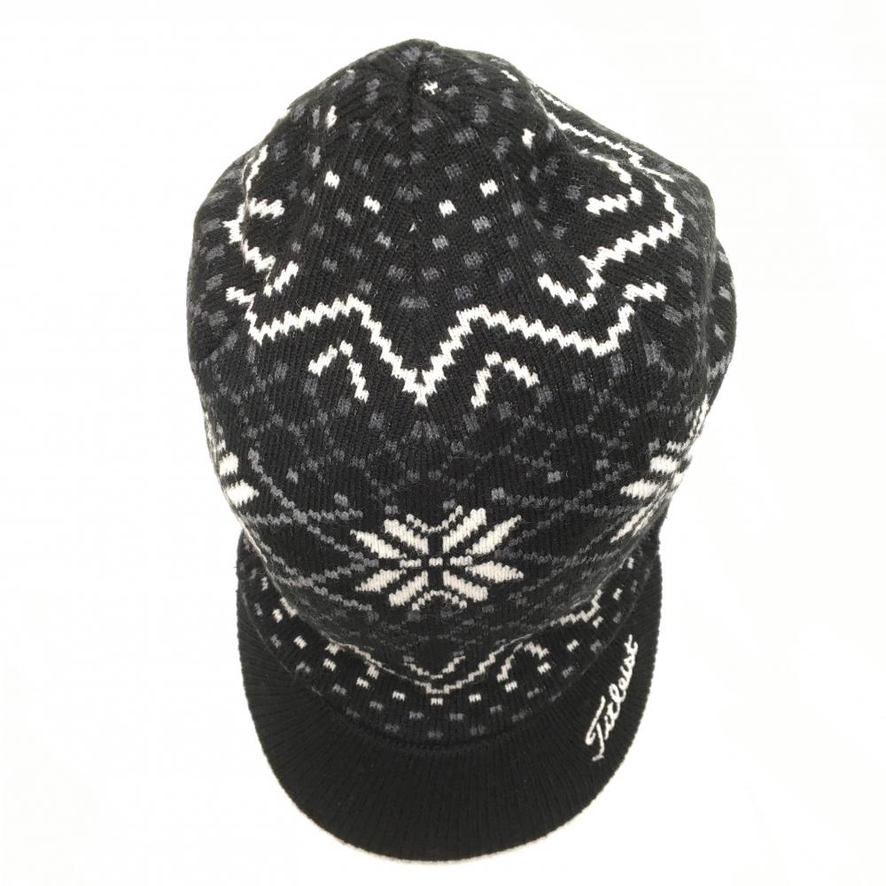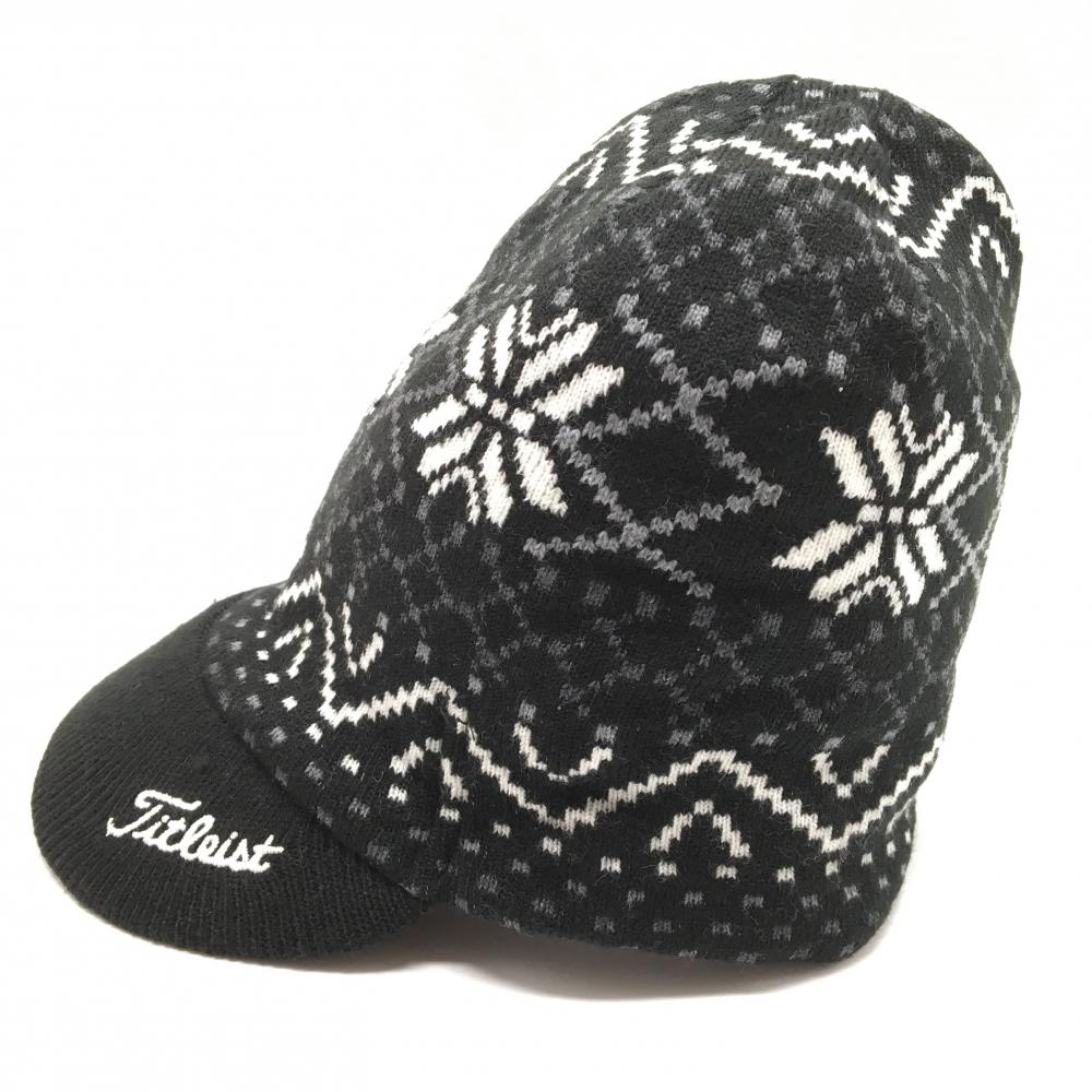 タイトリスト つば付きニット帽 黒×白 ロゴ刺しゅう 表記なし ゴルフウェア TITLEIST