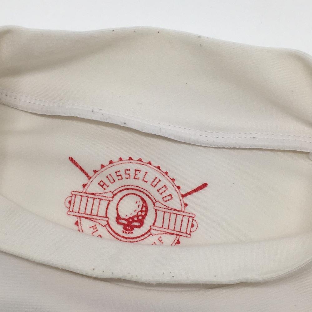 ラッセルノ ハイネックインナーシャツ 白×レッド 袖ロゴプリント レディース M ゴルフウェア RUSSELUNO