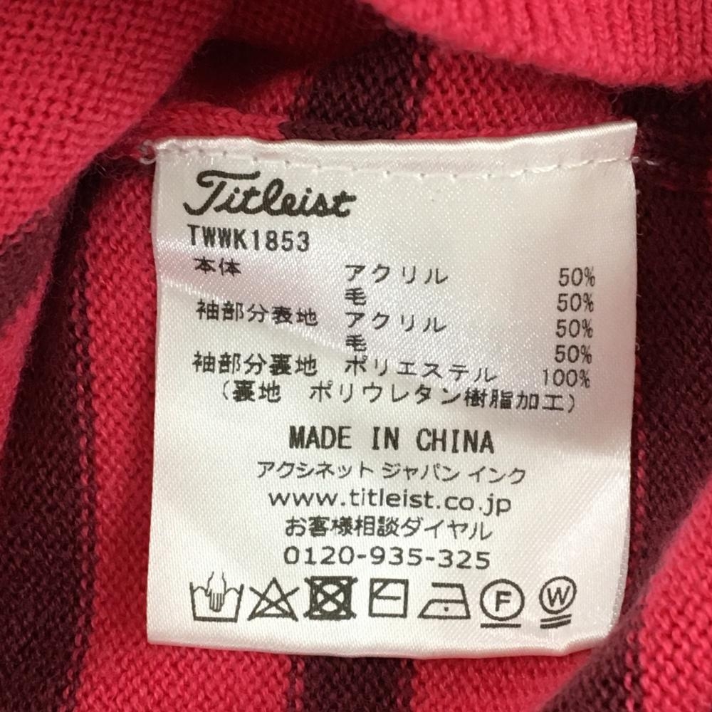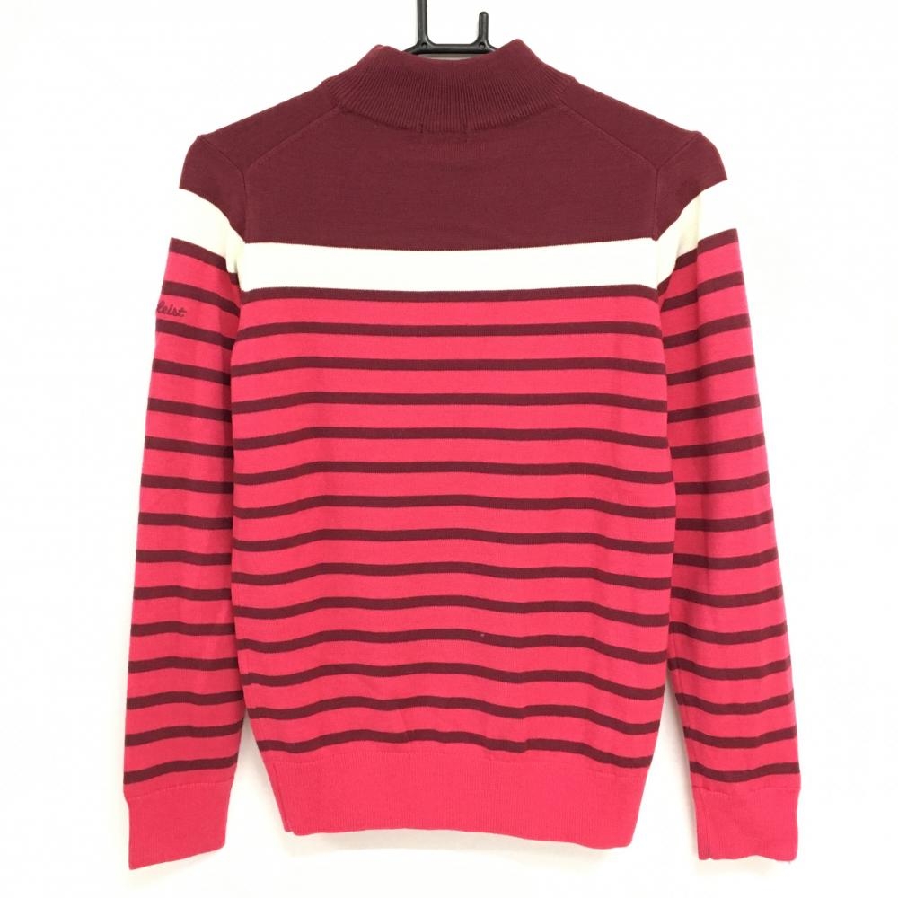 【美品】タイトリスト ハイネックセーター ピンク×ボルドー ボーダー ニット レディース L ゴルフウェア TITLEIST